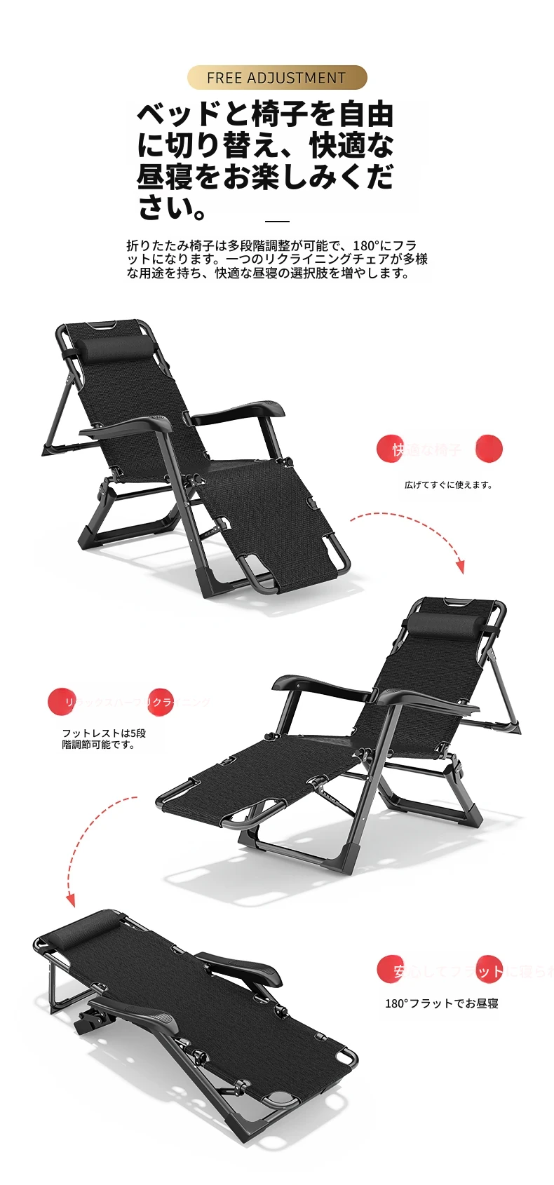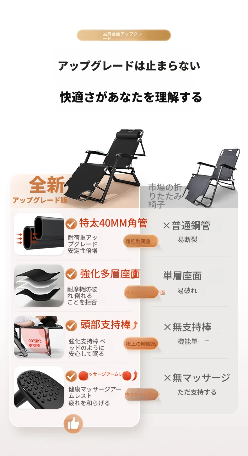 秋の新作!オフィスや家庭で大活躍の折りたたみリクライニングチェア。バルコニーでもリラックスできる、昼寝にも最適な2WAYデザイン。快適なひとときをお楽しみください!