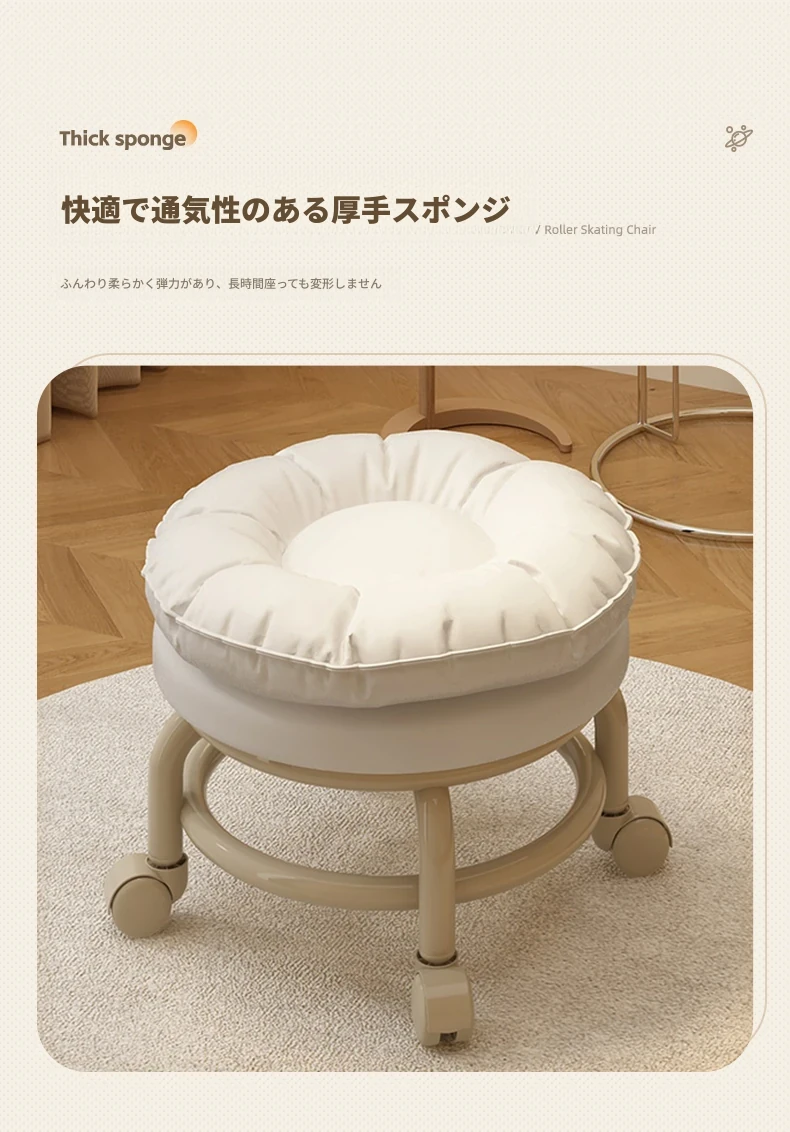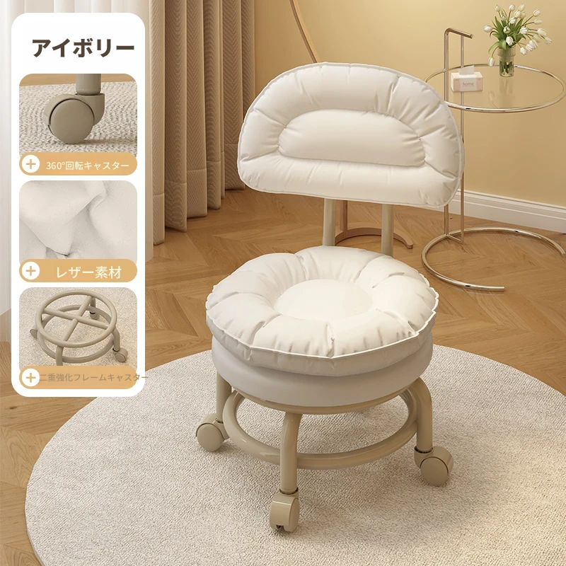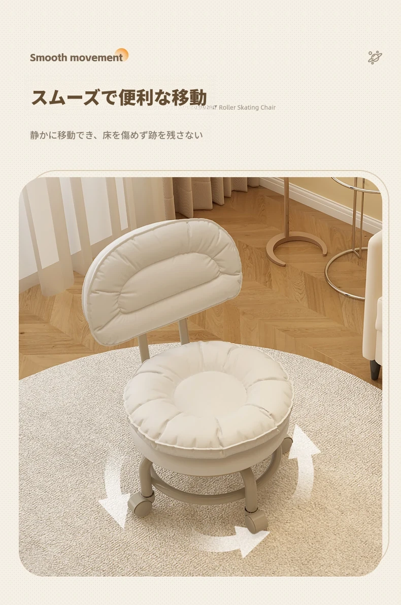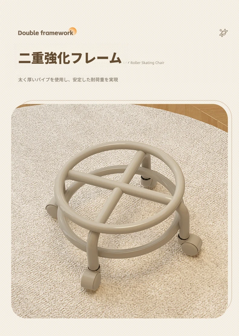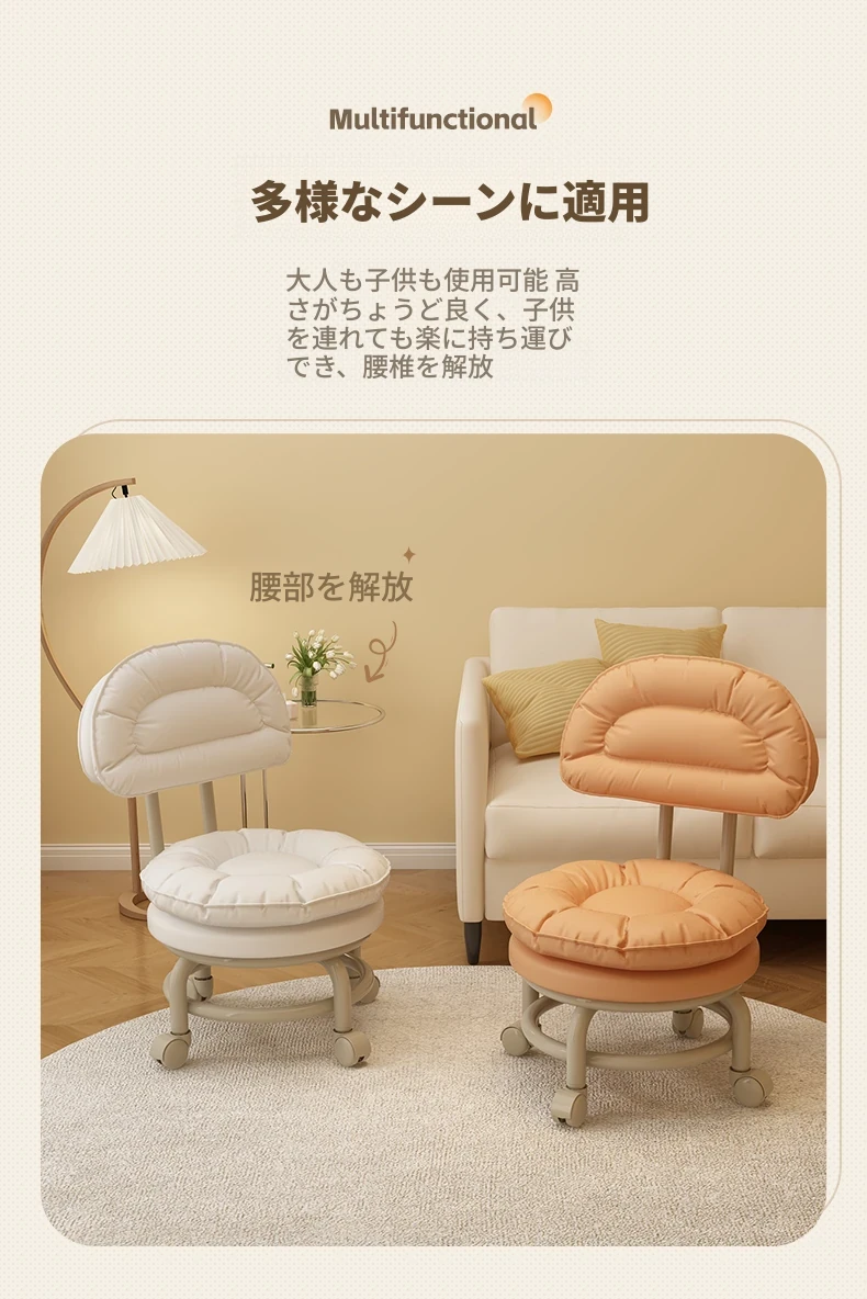 キャスター付き小型スツール 家庭用ロータイプ お子様の歩行練習に最適!便利な丸型スツール、育児のお助けアイテム。楽々移動できる背もたれ付き椅子で、リラックスしたひとときをお楽しみください。