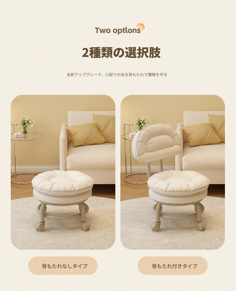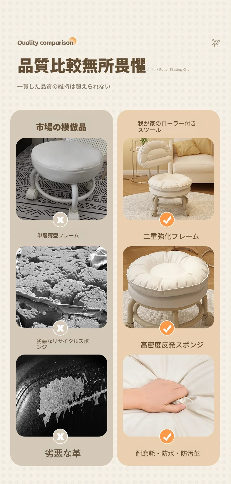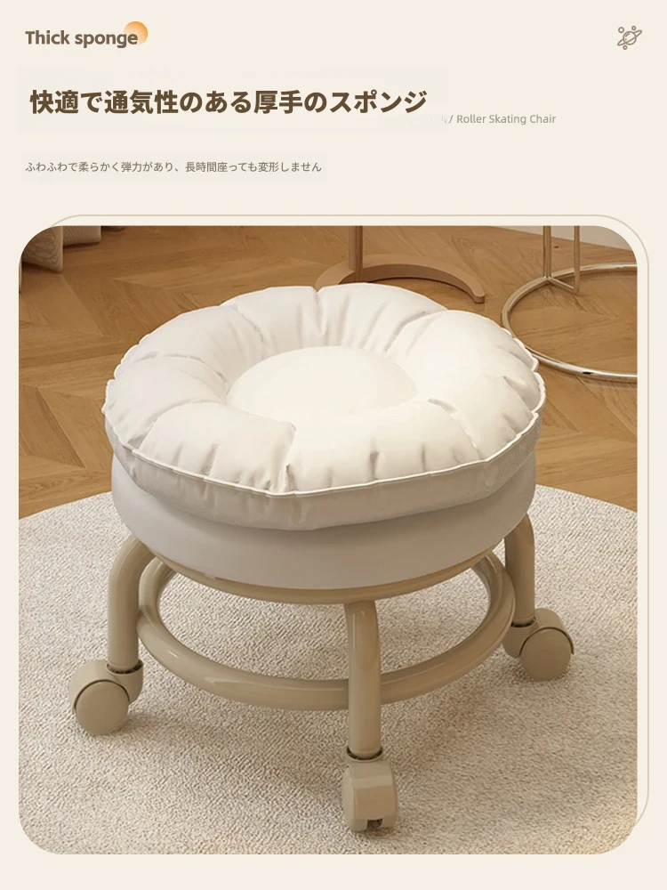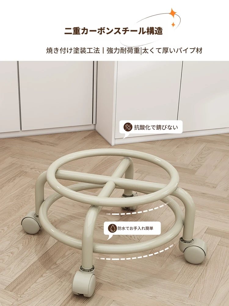 キャスター付き小型スツール 家庭用ロータイプ お子様の歩行練習に最適!便利な丸型スツール、育児のお助けアイテム。楽々移動できる背もたれ付き椅子で、リラックスしたひとときをお楽しみください。