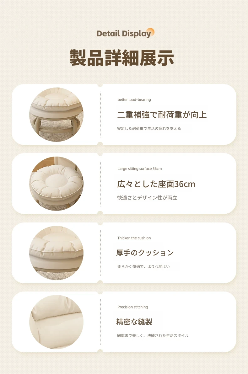 【新アップグレード・幅広バックレストで腰をサポート】厚めのクッション【アイボリー】アップグレードされた精密スチールフレーム