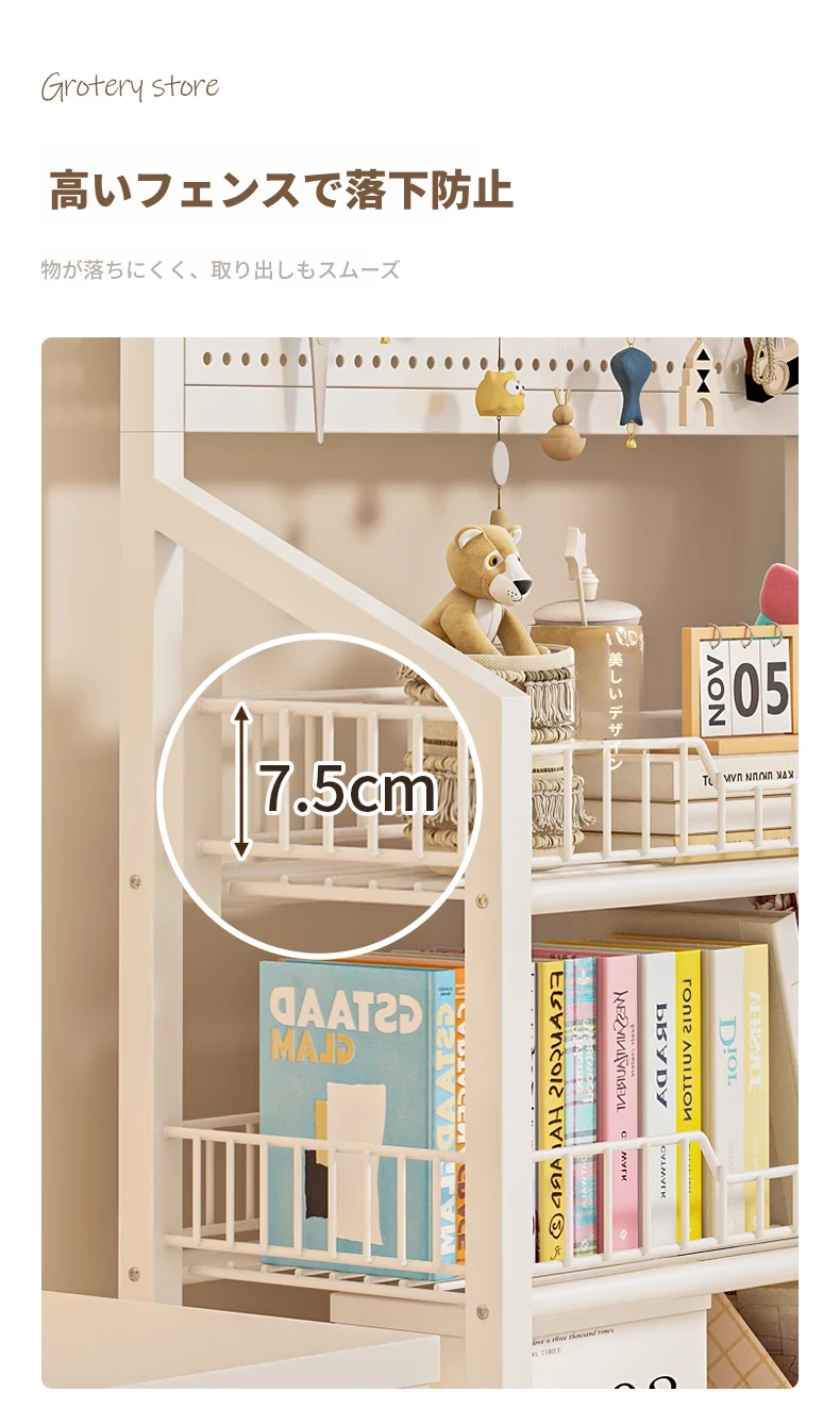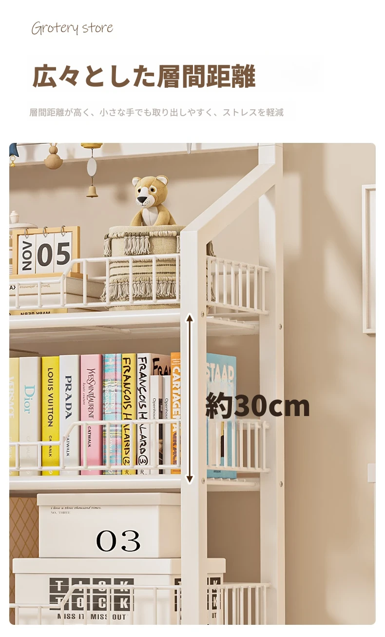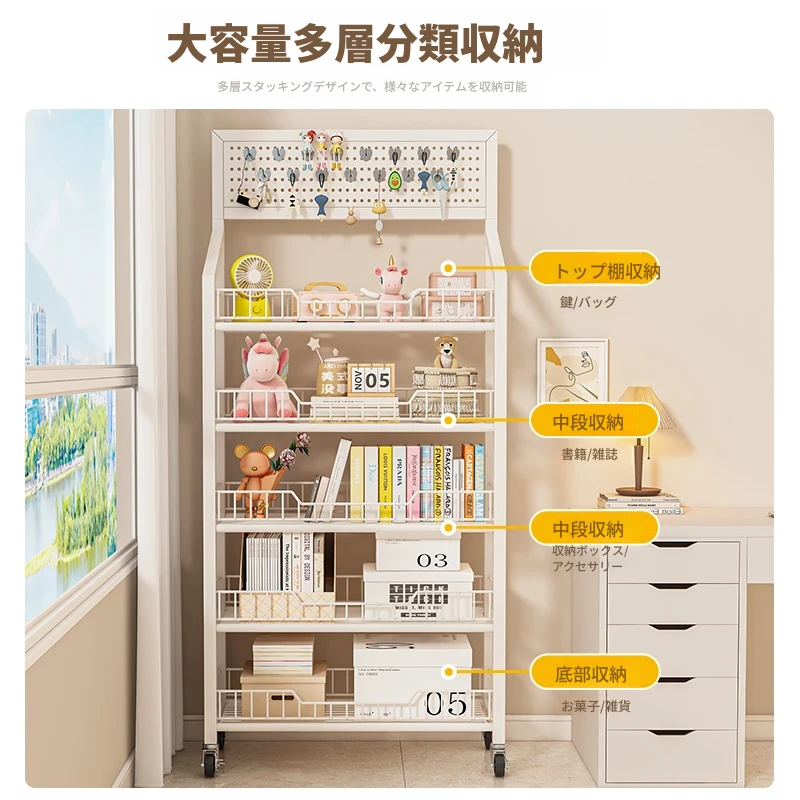 五層加厚-クリームホワイト60cm+キャスター【15フックプレゼント】