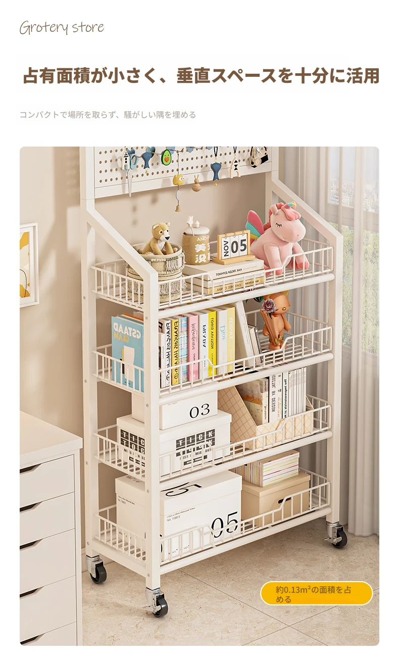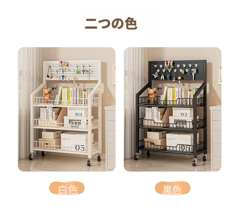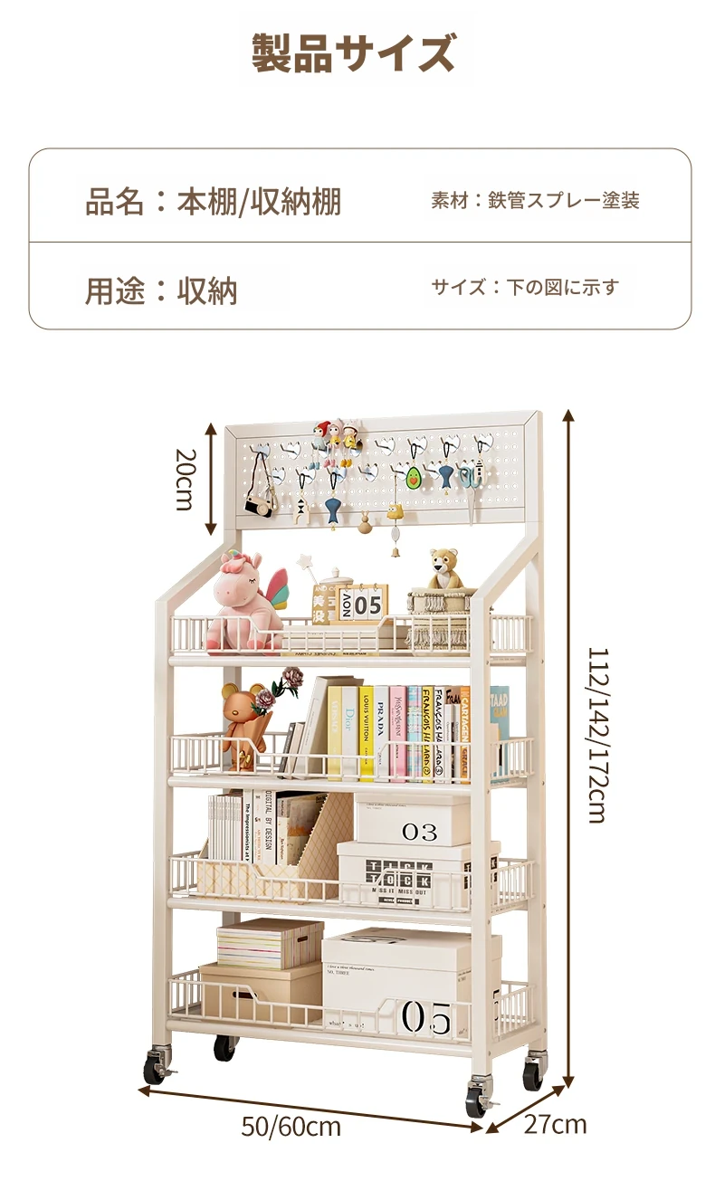 四層加厚-クリームホワイト60cm+キャスター【15フックプレゼント】