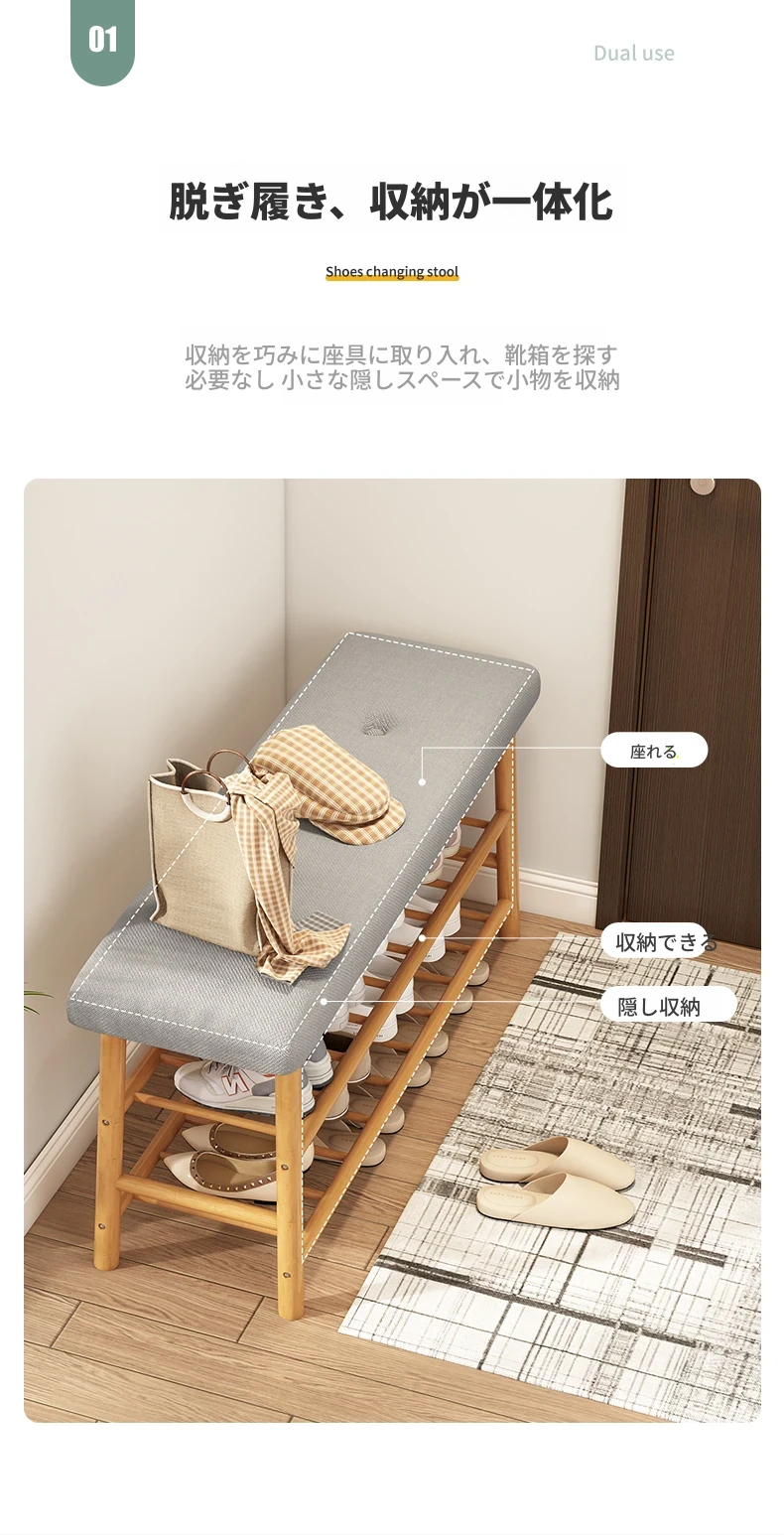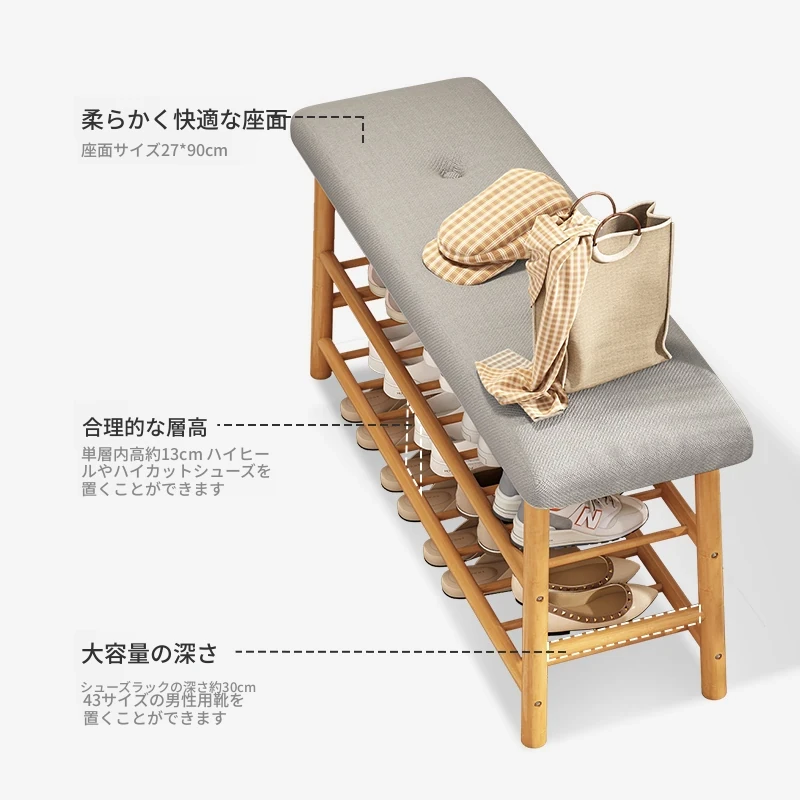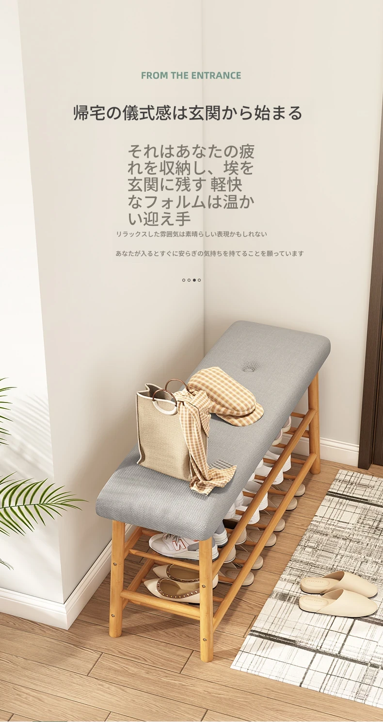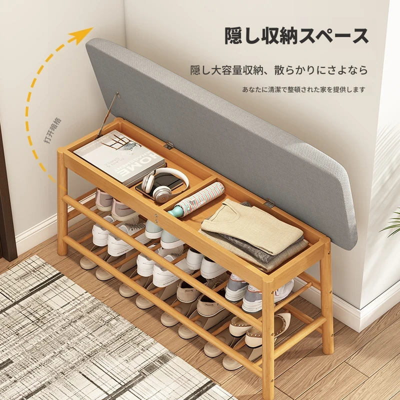 玄関用スリッパ替えベンチ!多層式簡易シューズキャビネット、座れる収納ソファ一体型。靴を履く時の便利なアイテム、スタイリッシュなデザインで玄関をおしゃれに演出!
