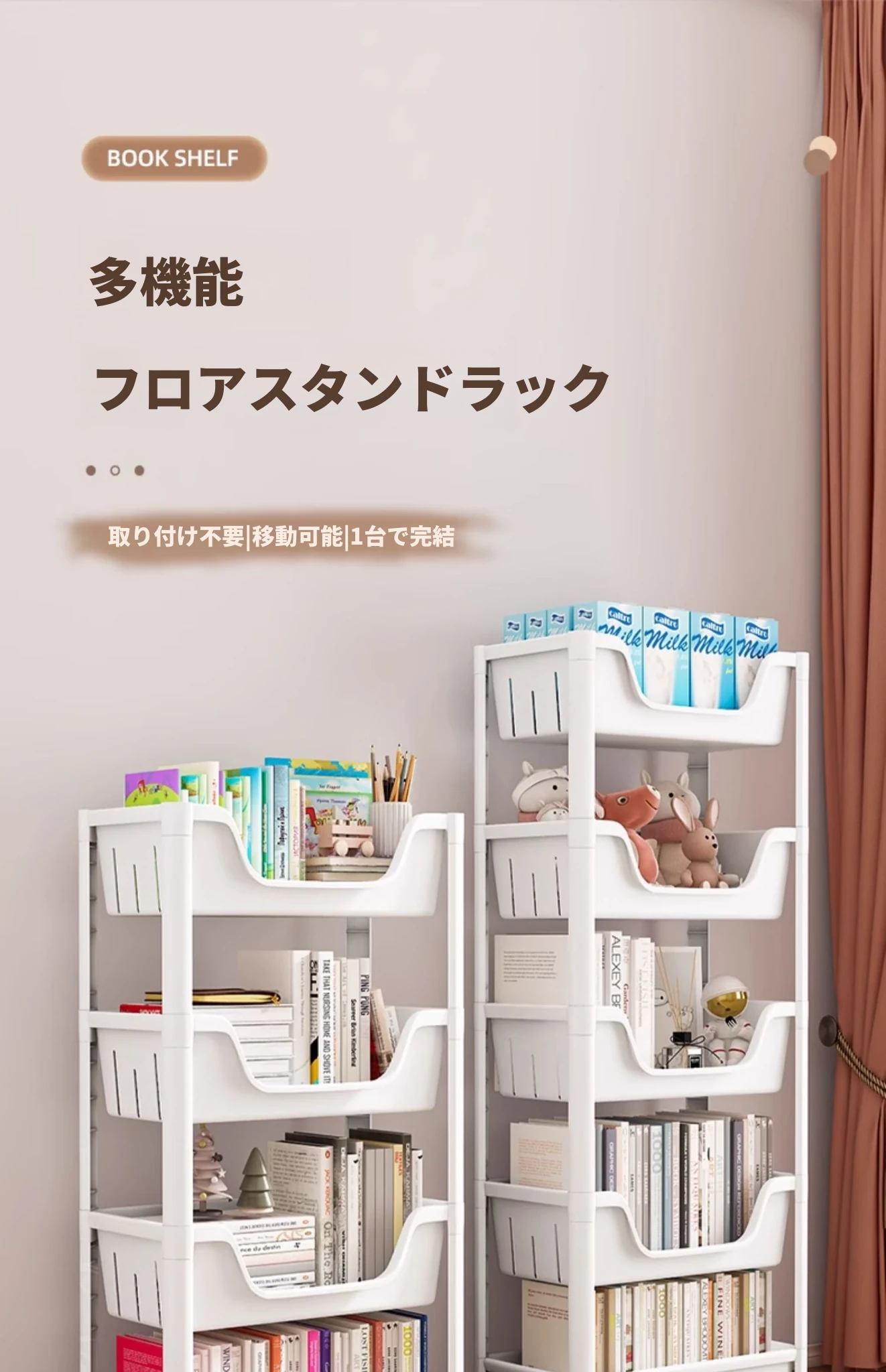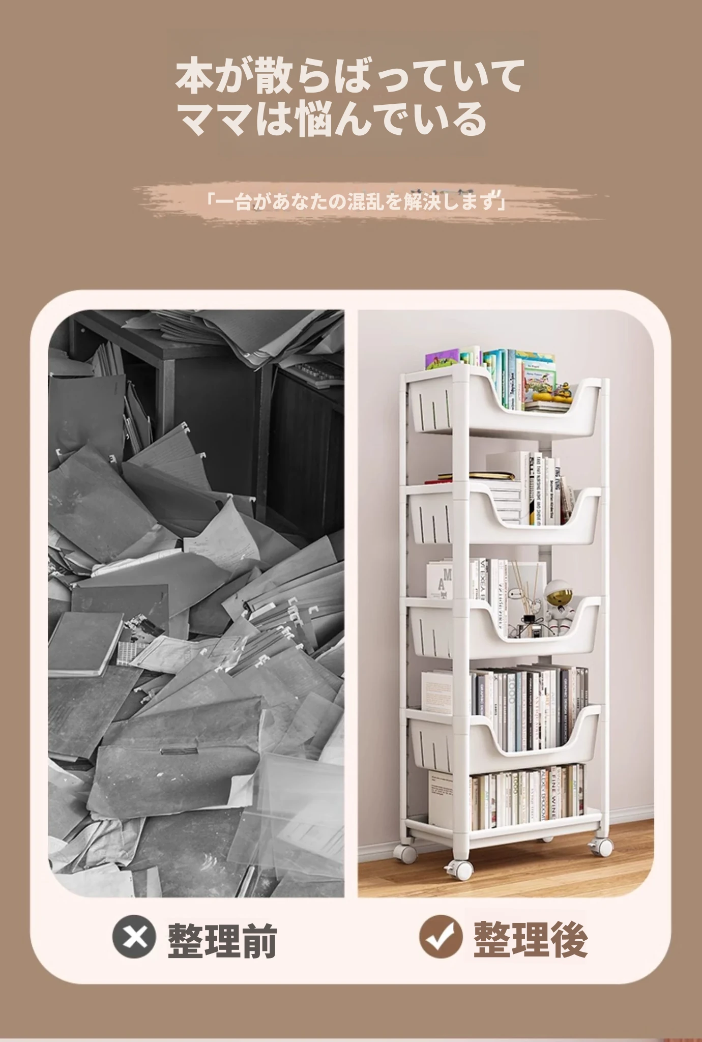 移動可能な多層書棚!子供用収納ラック、キャスター付きの便利な小型カート。家庭や寮に最適なシンプルな書庫で、お部屋をスッキリ整頓!