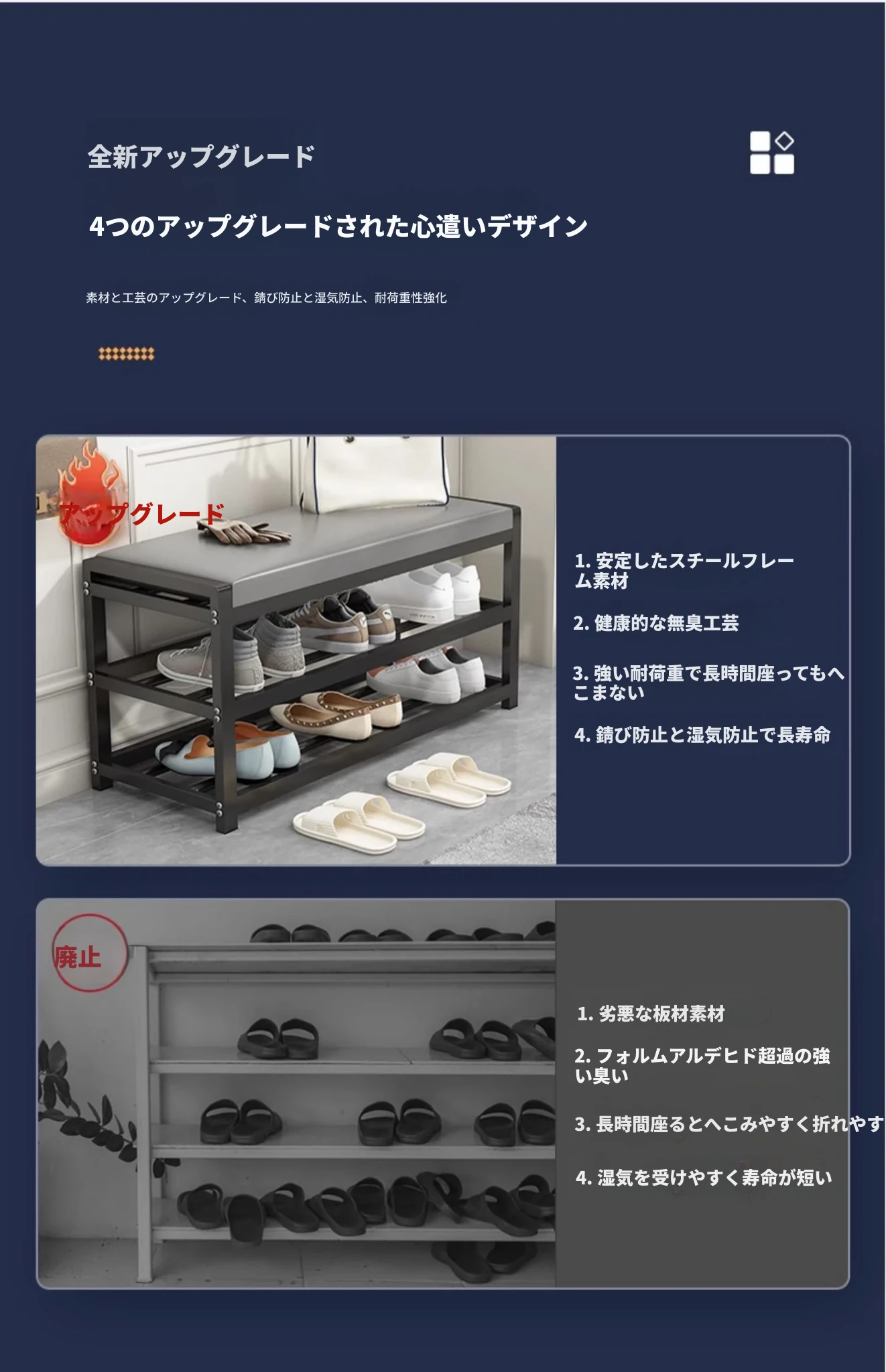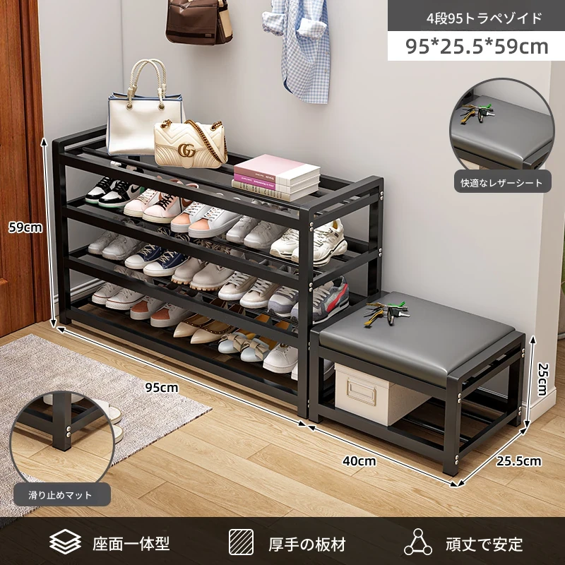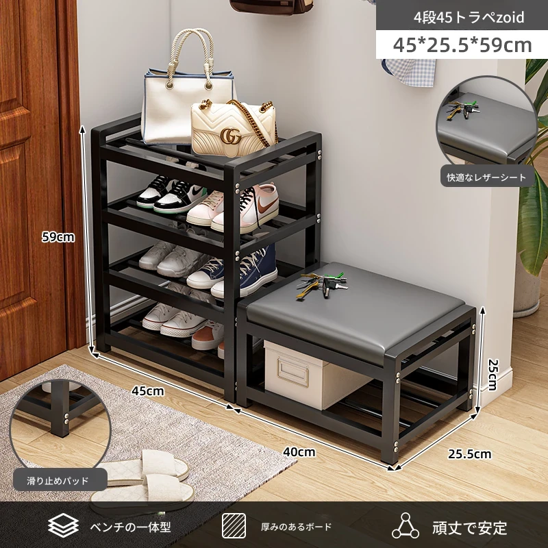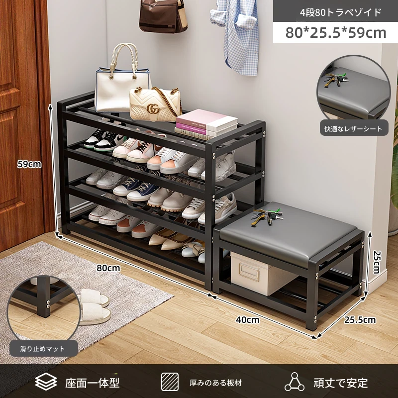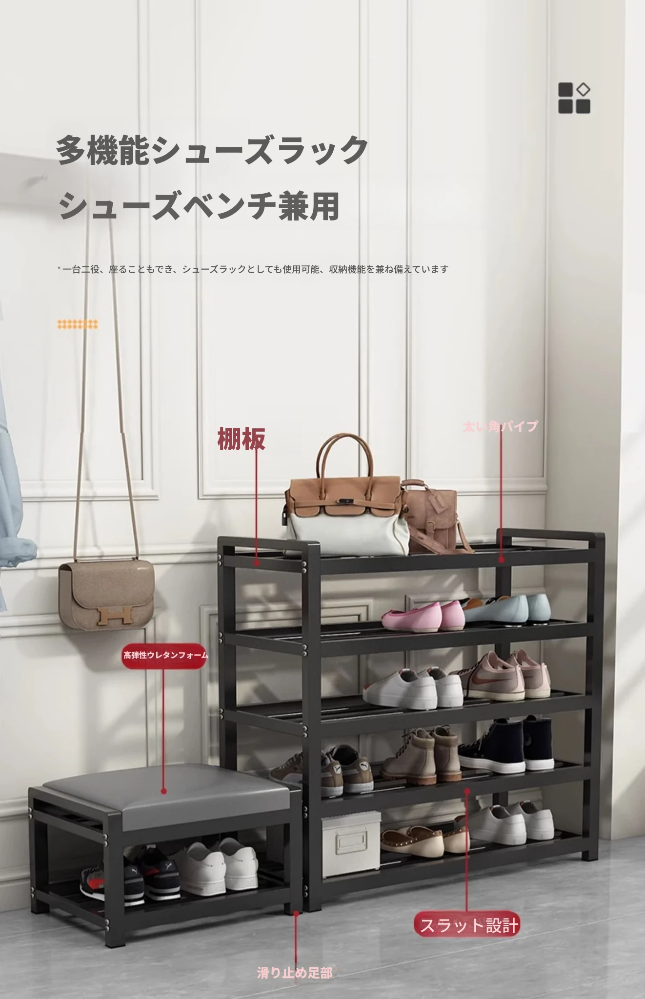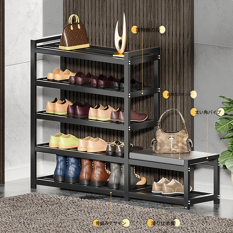 家用スチール製シューラック - 室内用のスタイリッシュな多層収納!玄関での必需品、金属製で座れるシューキャビネット。整理整頓が簡単で、毎日の靴の出し入れもラクラク!