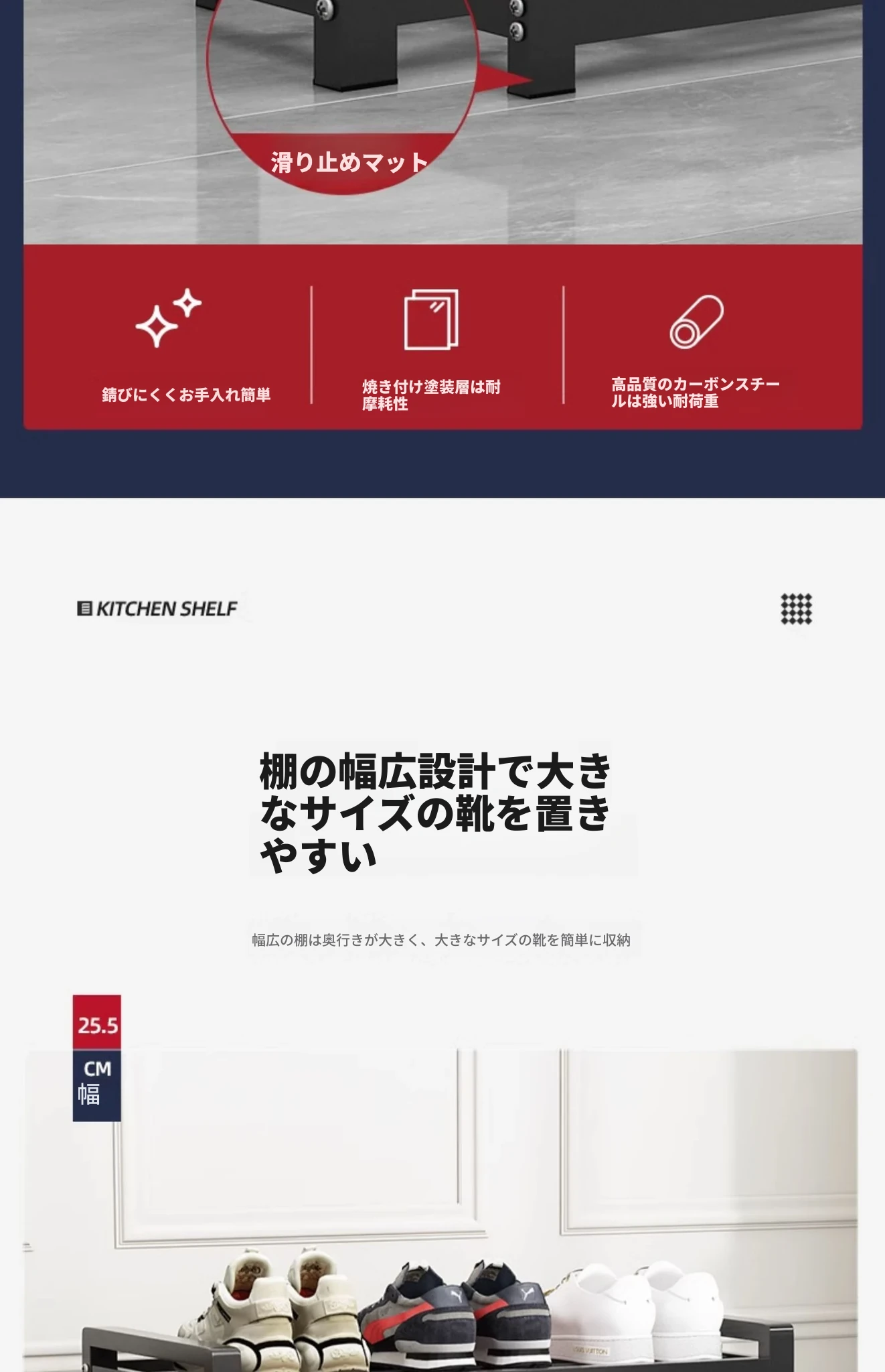 4段長さ95CM【厚手炭素鋼⭐強力耐荷重】