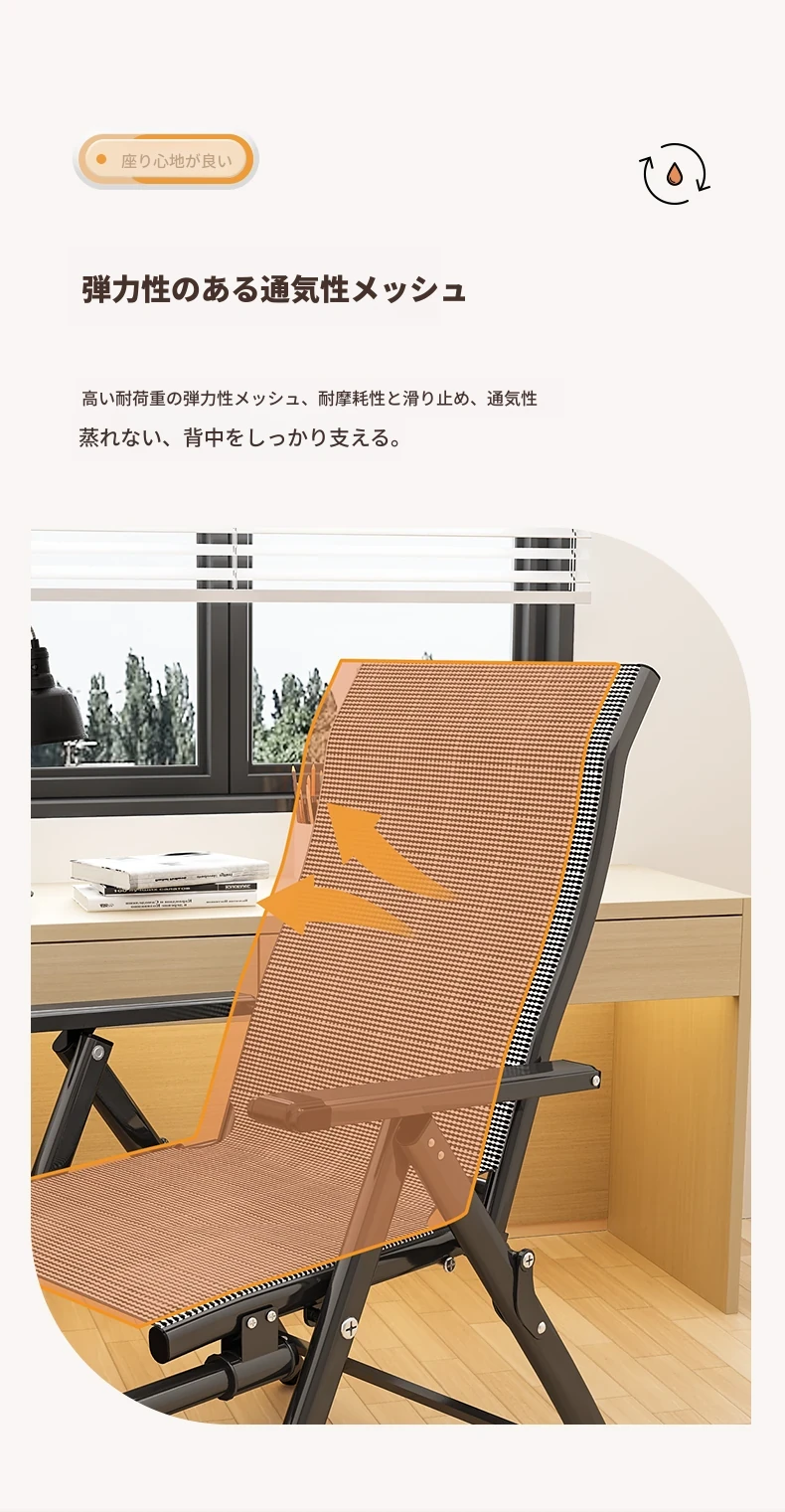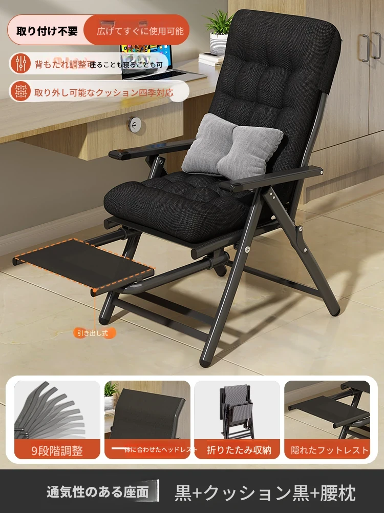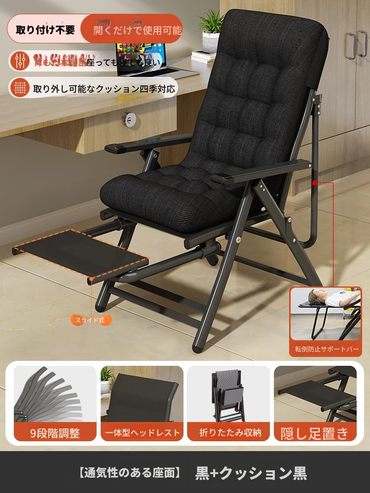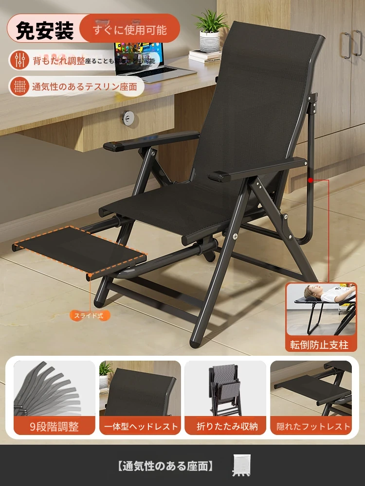 折りたたみ式リクライニングチェア - オフィスや学生寮に最適な快適な昼寝用!座っても寝てもOK!疲れた体を癒す、あなたのリラックスタイムをサポートします。