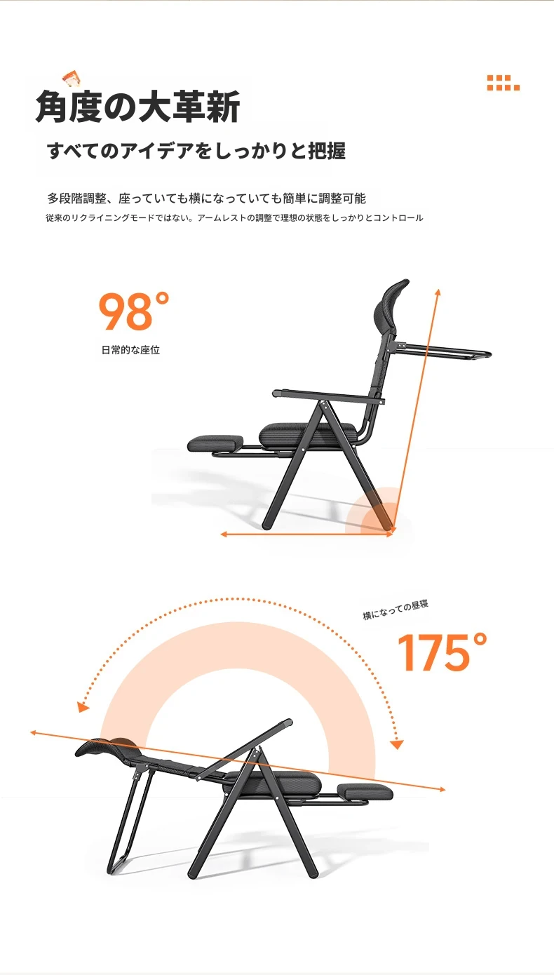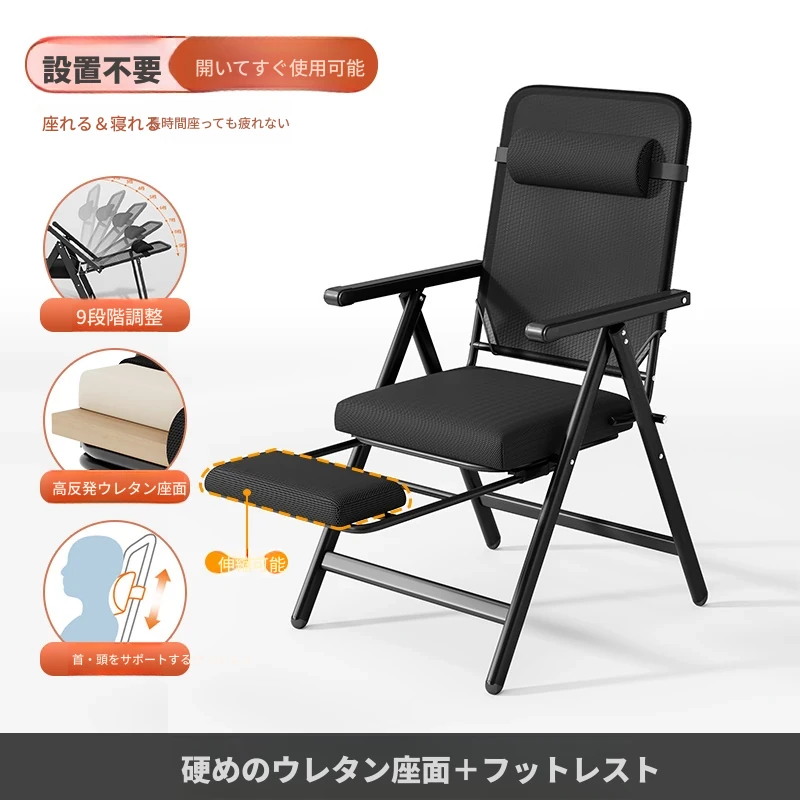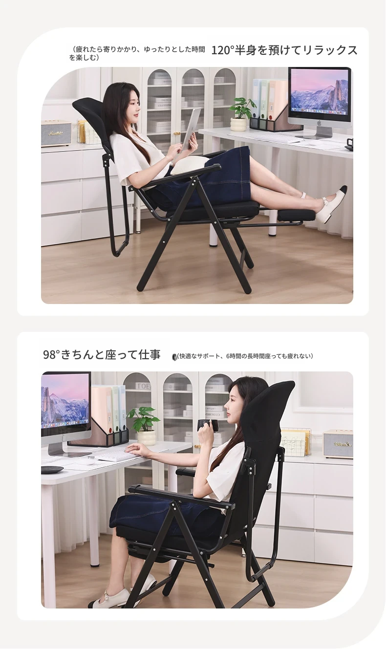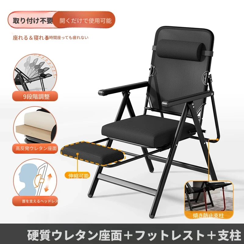 新作!折りたたみ式リクライニングチェア - オフィスでの昼寝や自宅でのリラックスに最適!背もたれ付きで快適、使わない時はコンパクトに収納可能。デザイン性と機能性を兼ね備えた一台をお見逃しなく!