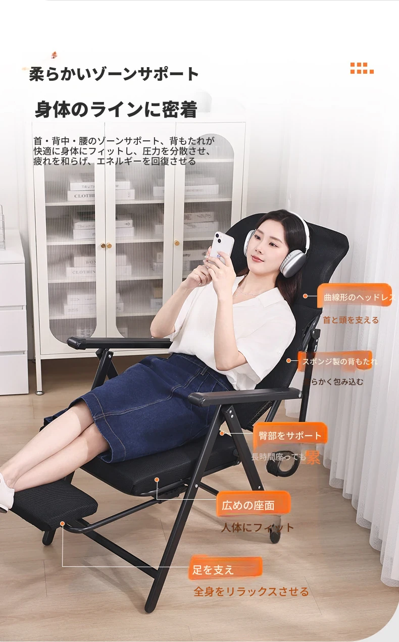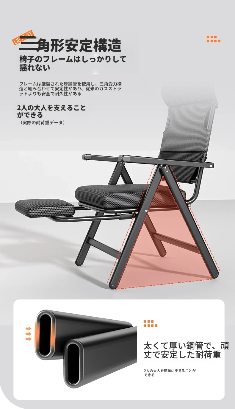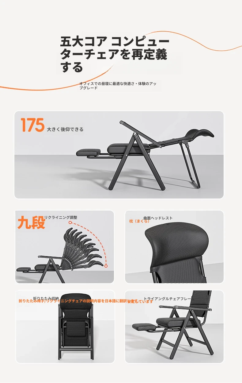 新作!折りたたみ式リクライニングチェア - オフィスでの昼寝や自宅でのリラックスに最適!背もたれ付きで快適、使わない時はコンパクトに収納可能。デザイン性と機能性を兼ね備えた一台をお見逃しなく!