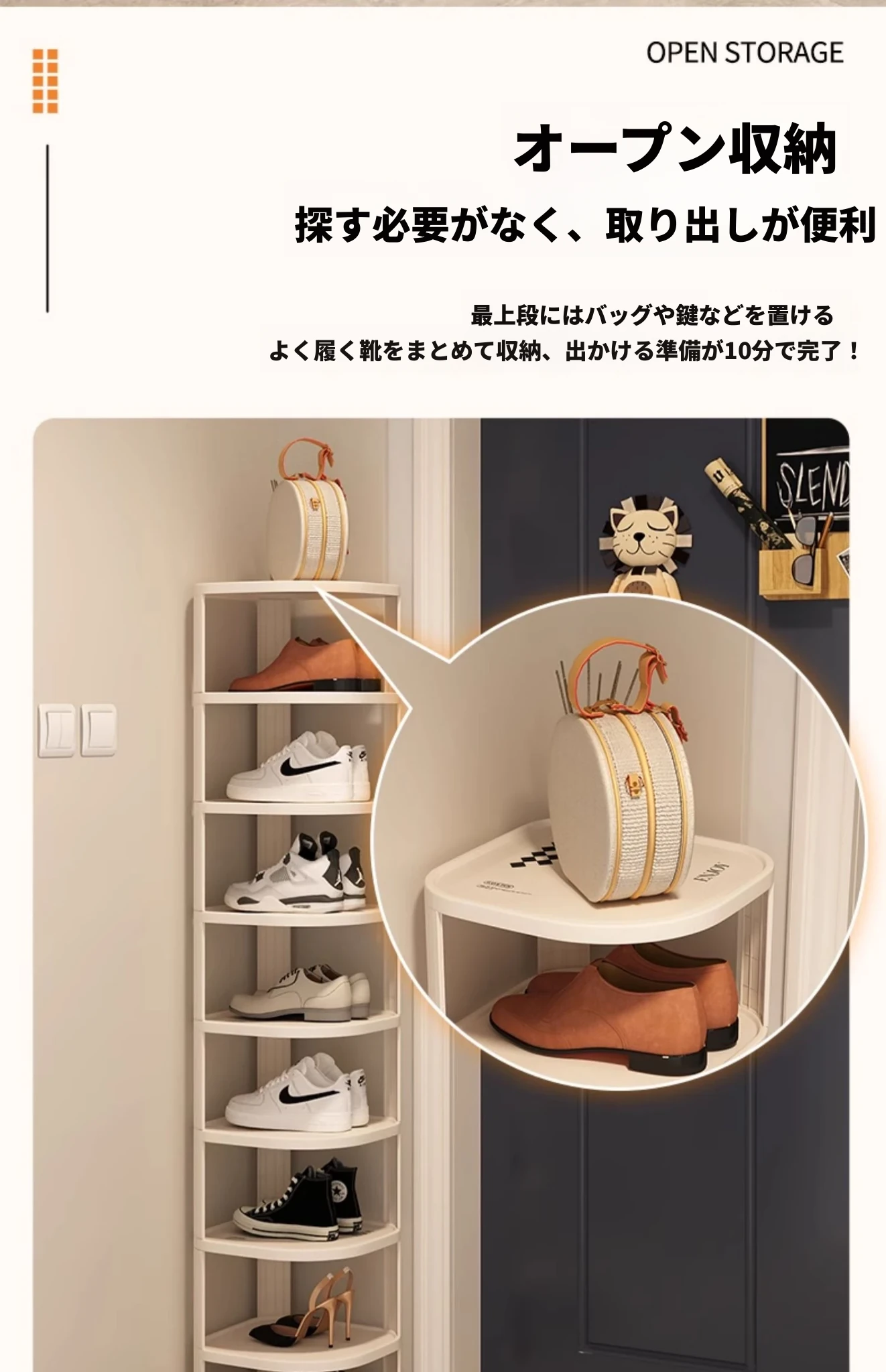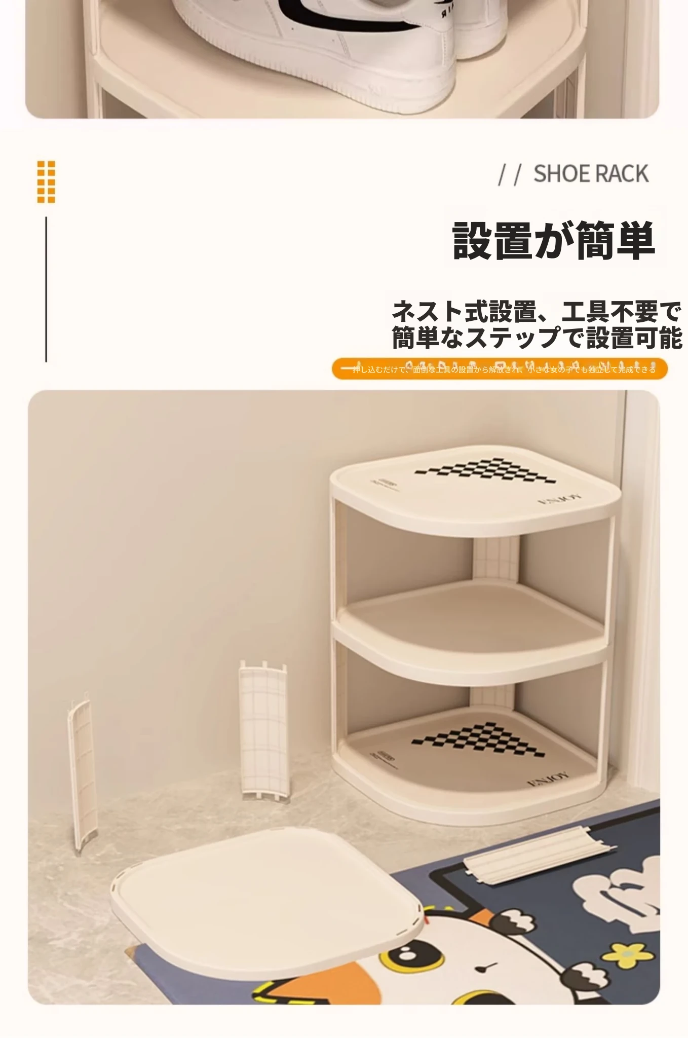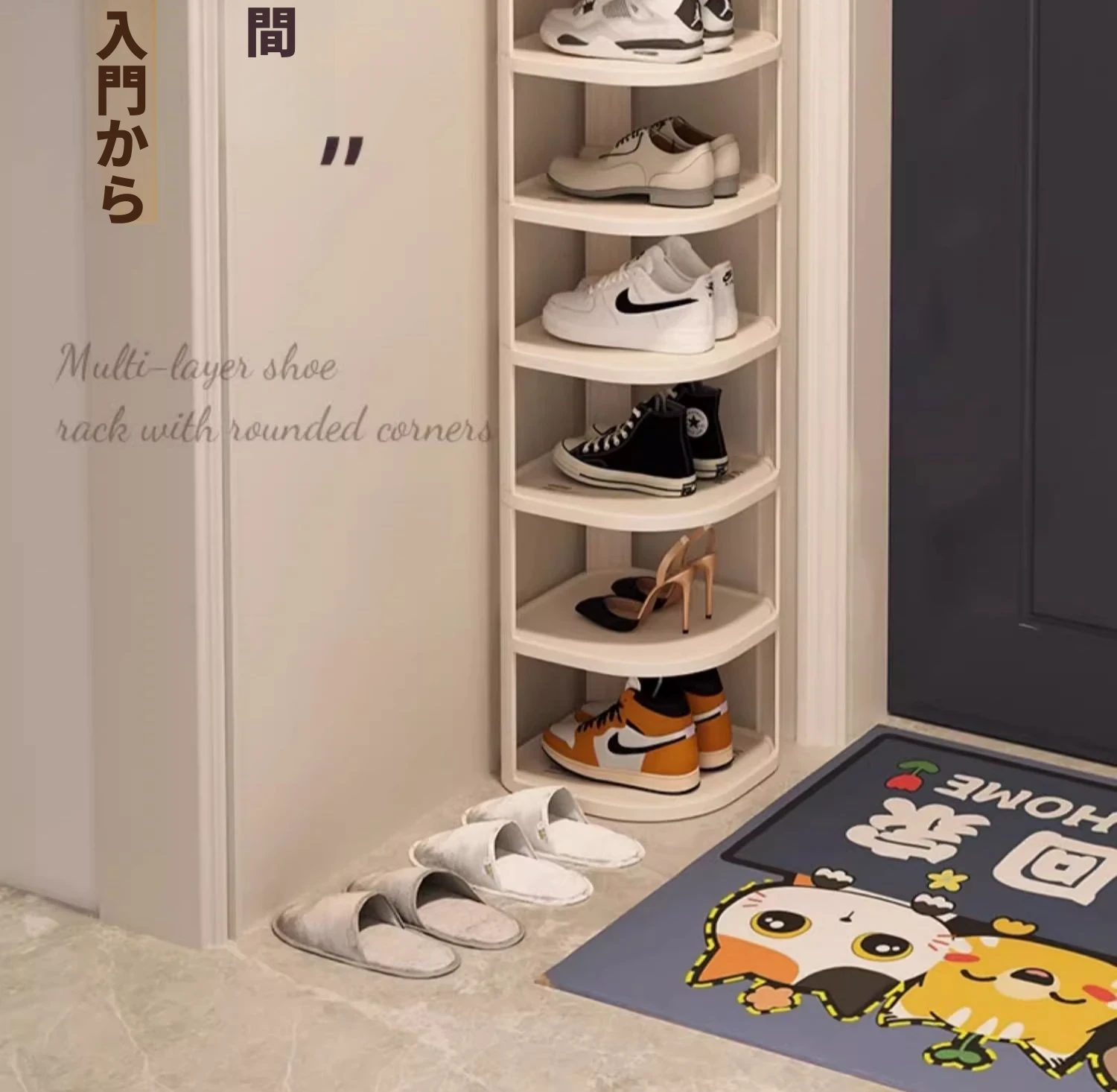 新型玄関用シューズラック!多段式コンパクトシューズキャビネット、簡易家庭用靴収納アイテム。省スペースで角にもピッタリ、整理整頓が簡単に!