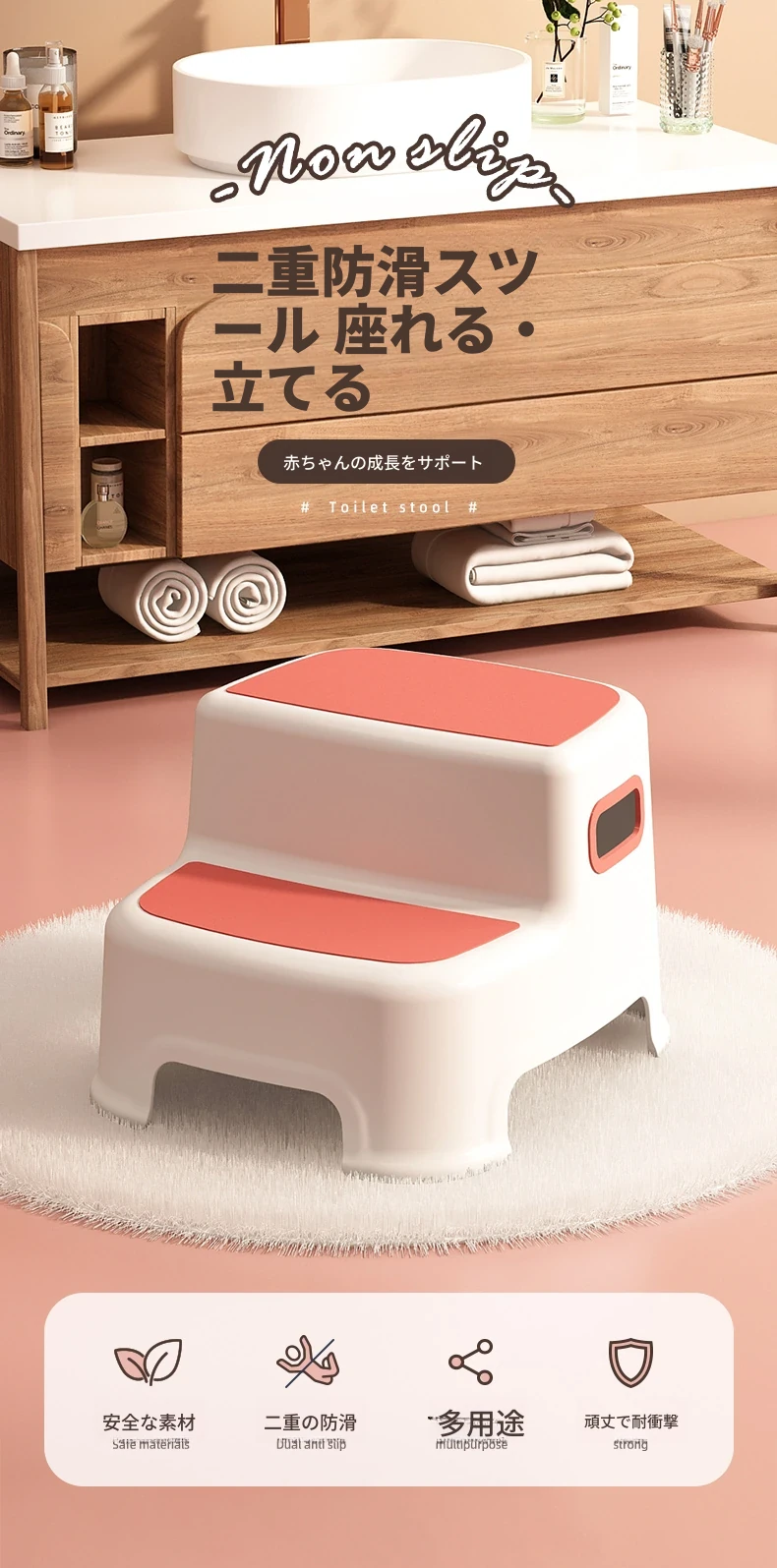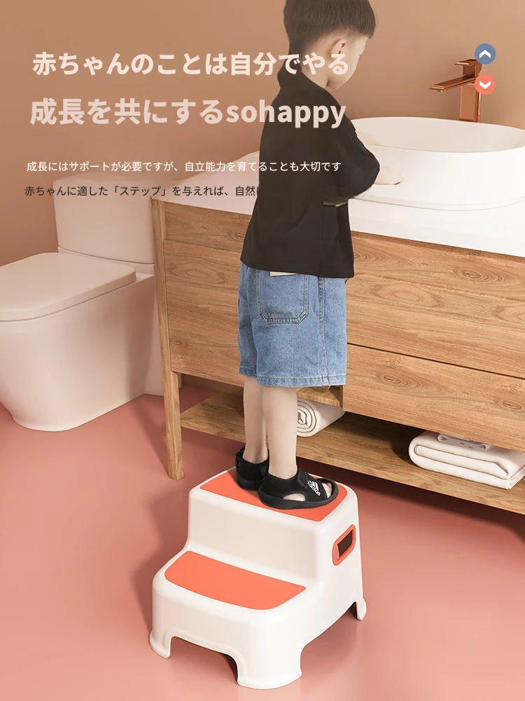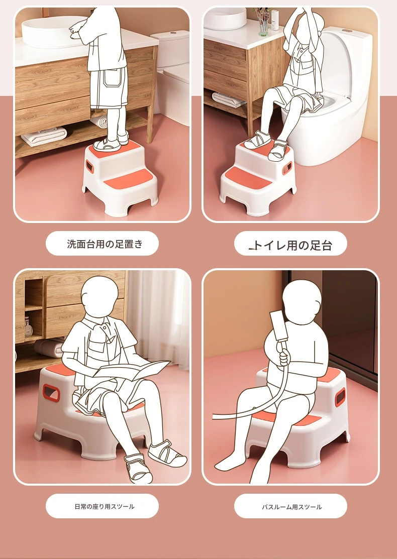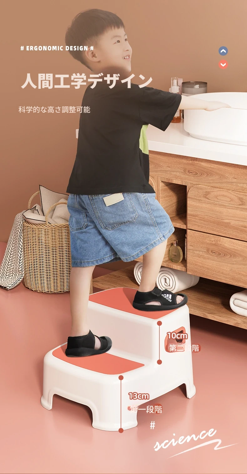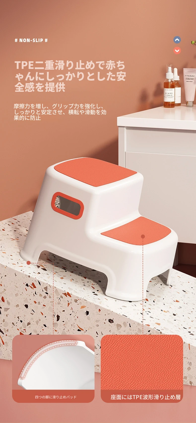 子供用洗面台踏み台 - 滑り止め付き!トイレや洗面所で大活躍の安全設計。小さなお子様が自分で手洗いや顔洗い、トイレも安心して使える便利なステップスツール。家庭での必需品です!