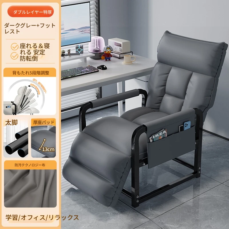 豪華で快適な最高仕様⭐アップグレード二重層特厚【ダークグレー+調整可能な足置き丨テクノロジー布】快適に横たわる/リラックスした昼寝