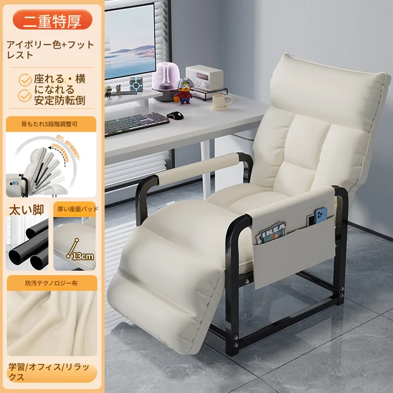 豪華で快適な最高仕様⭐アップグレード二重層特厚【アイボリー+調整可能な足置き丨テクノロジー布】快適に横たわる/リラックスした昼寝