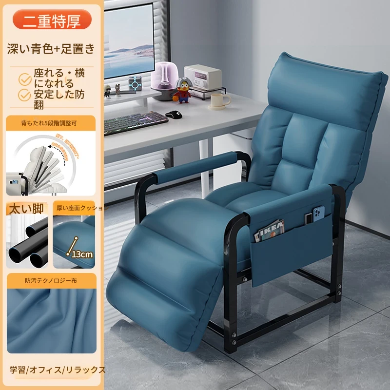 アップグレード二重層特厚【ディープブルー+調整可能な足置き丨テクノロジー布】快適に横たわる/リラックスした昼寝