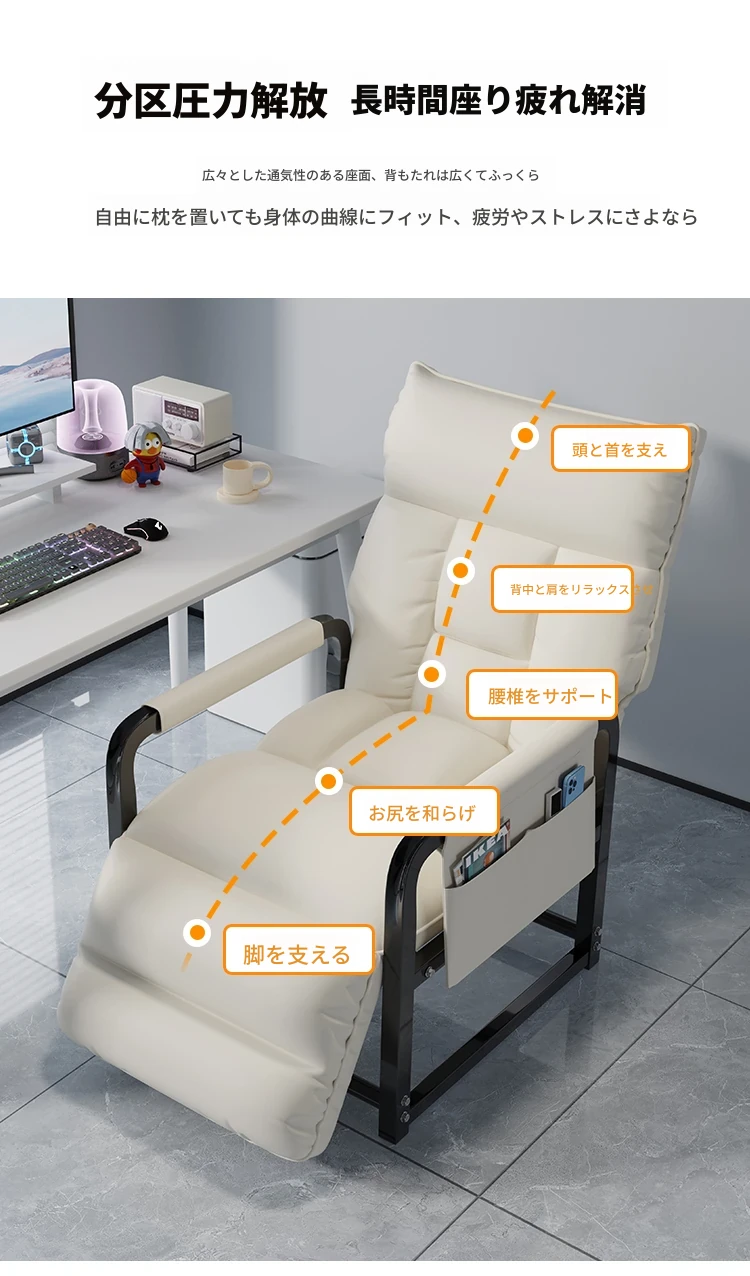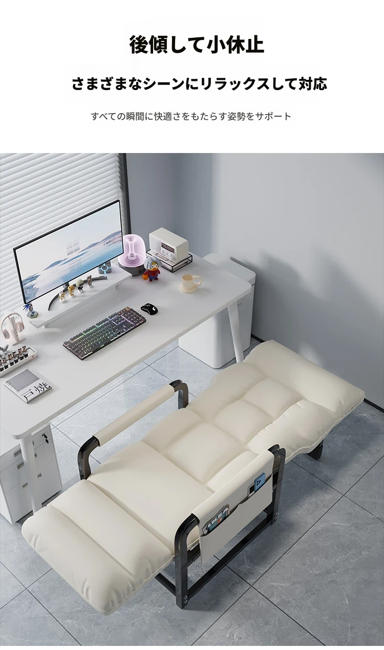 オフィスで使える折りたたみベッド!お昼寝に最適な2WAYチェア、座れる&寝れる!リラックスできるソファ椅子、家庭用・パソコン用にもおすすめ!快適な休息時間をお楽しみください!