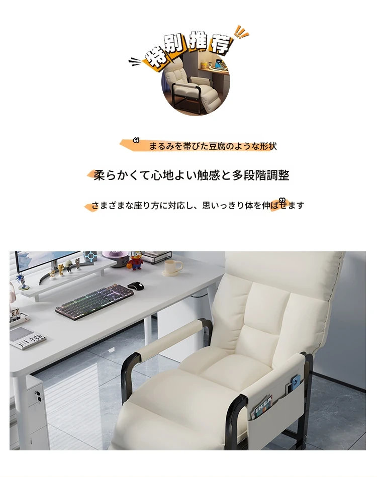 【アイボリー+調整可能な足置き丨テクノロジー布】快適に横たわる/リラックスした昼寝