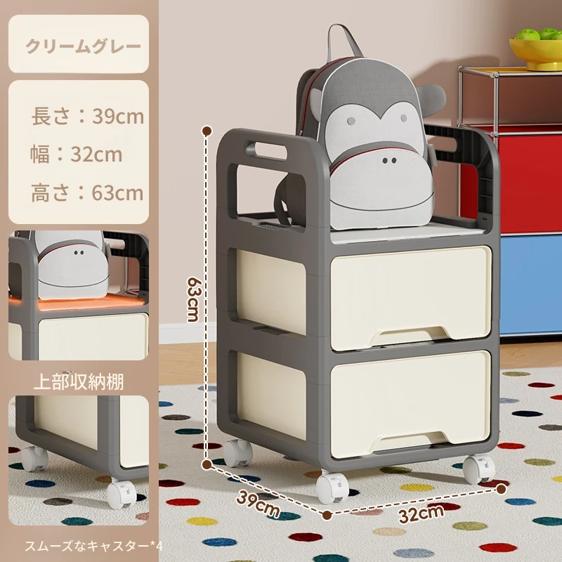 【アップグレードされた貿易品質】クリームグレー-4段【キャスター付き+引き出し収納】