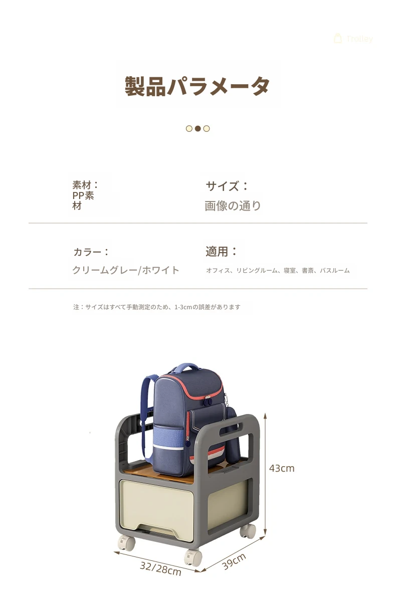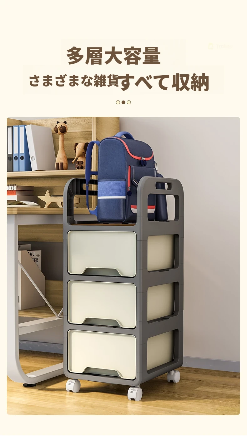 【アップグレードされた貿易品質】クリームグレー-3段【キャスター付き+引き出し収納】