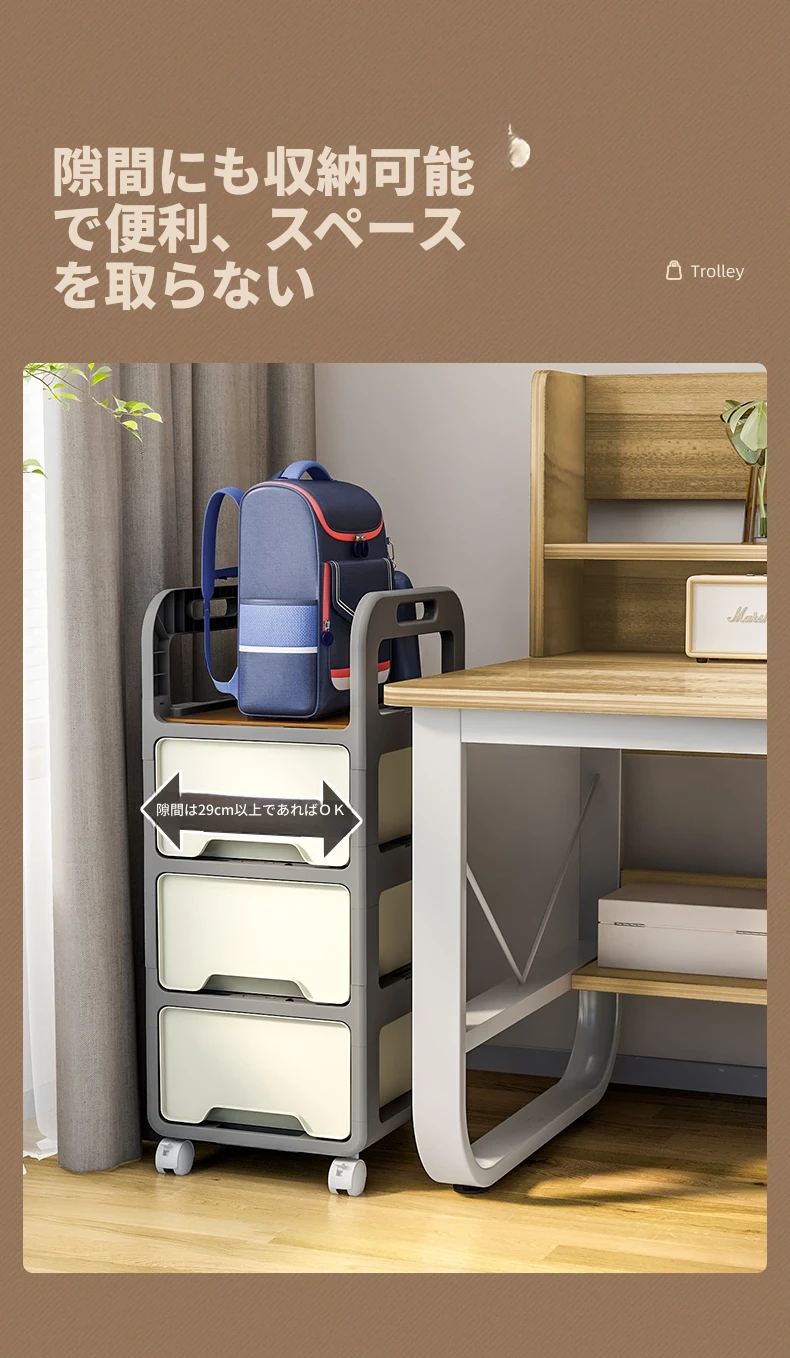 教科書や文具がスッキリ整理できる!移動式の書類収納カート - オフィスや机下にピッタリな小学生向けの書棚収納神器!快適な勉強環境を実現します!