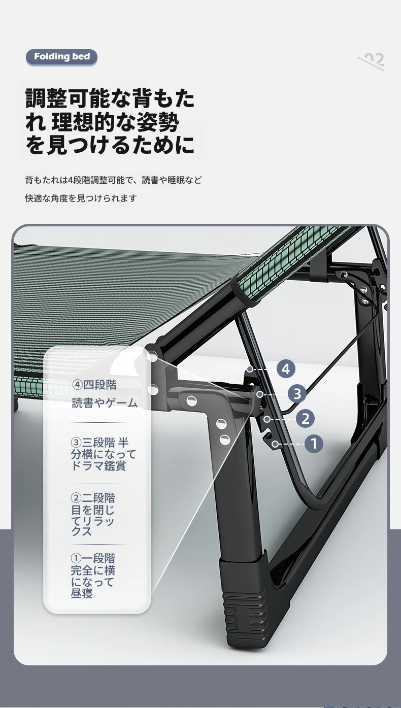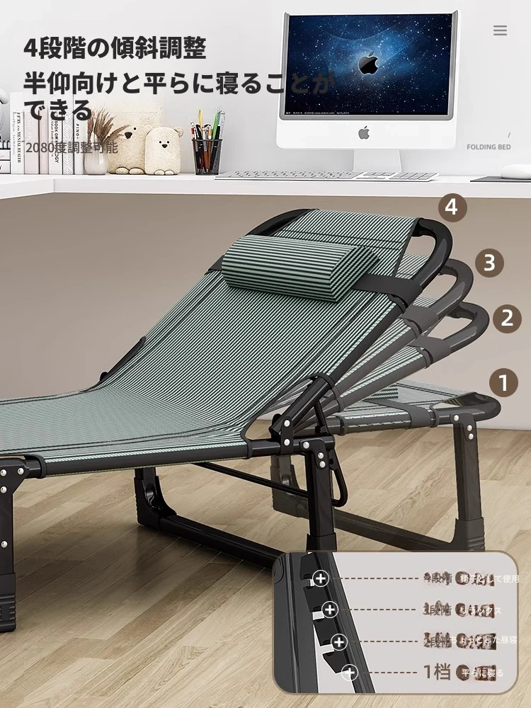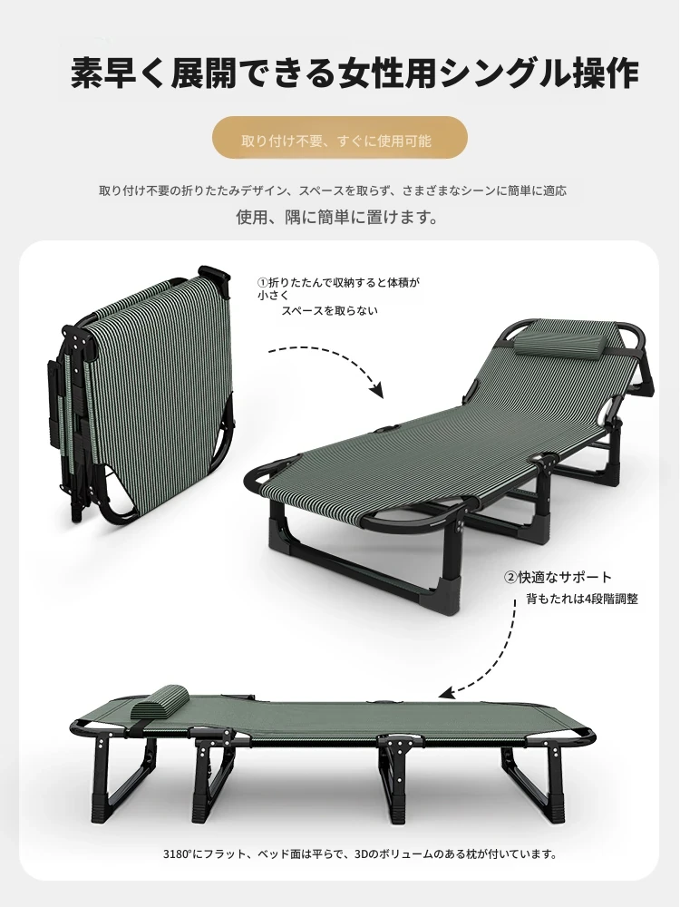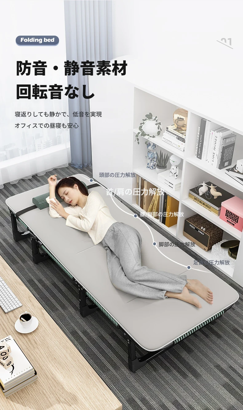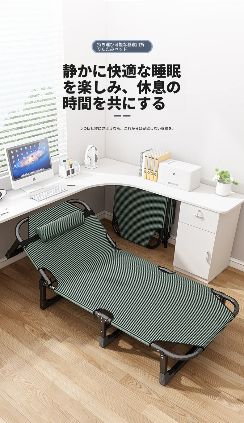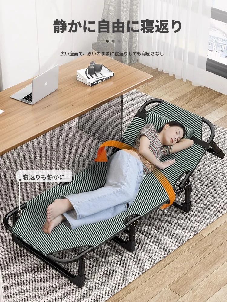 オフィス昼休み用シングル折りたたみベッド・リクライニングチェア|家庭用・介護用・簡易携帯式・大人の昼寝必需品!快適な休息を実現する、便利でスタイリッシュなアイテムです!