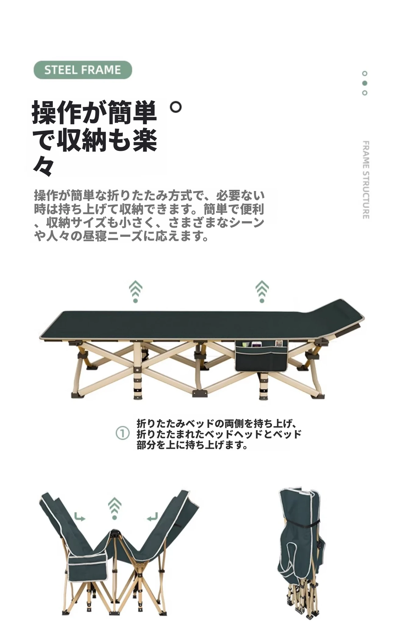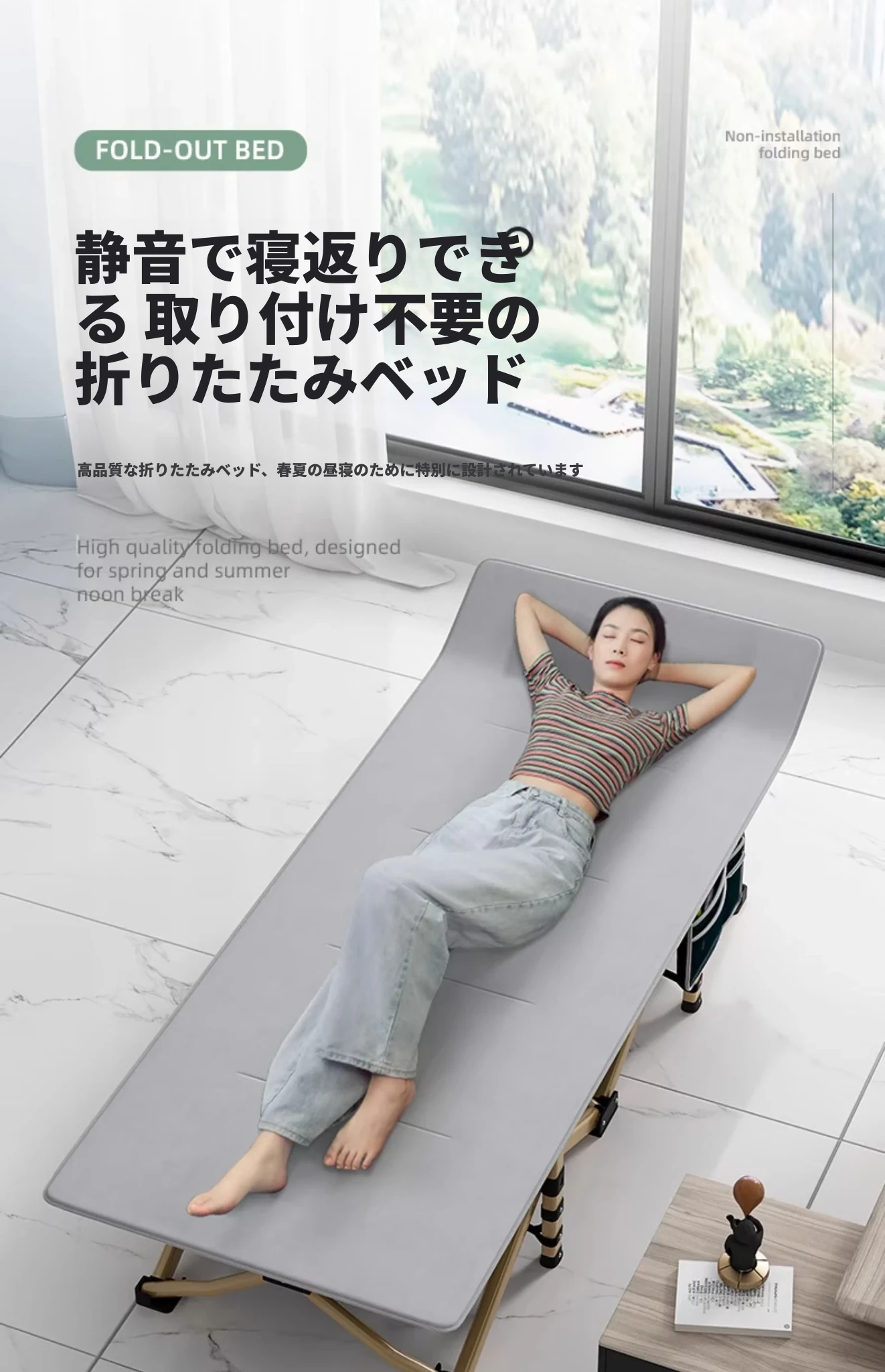 折りたたみ式オフィス昼寝用シングルベッド!家庭での快適な昼寝に最適な神器、バルコニーでのリラックスにもぴったりなアウトドア用携帯式折りたたみベッド!どこでも手軽にリフレッシュ!