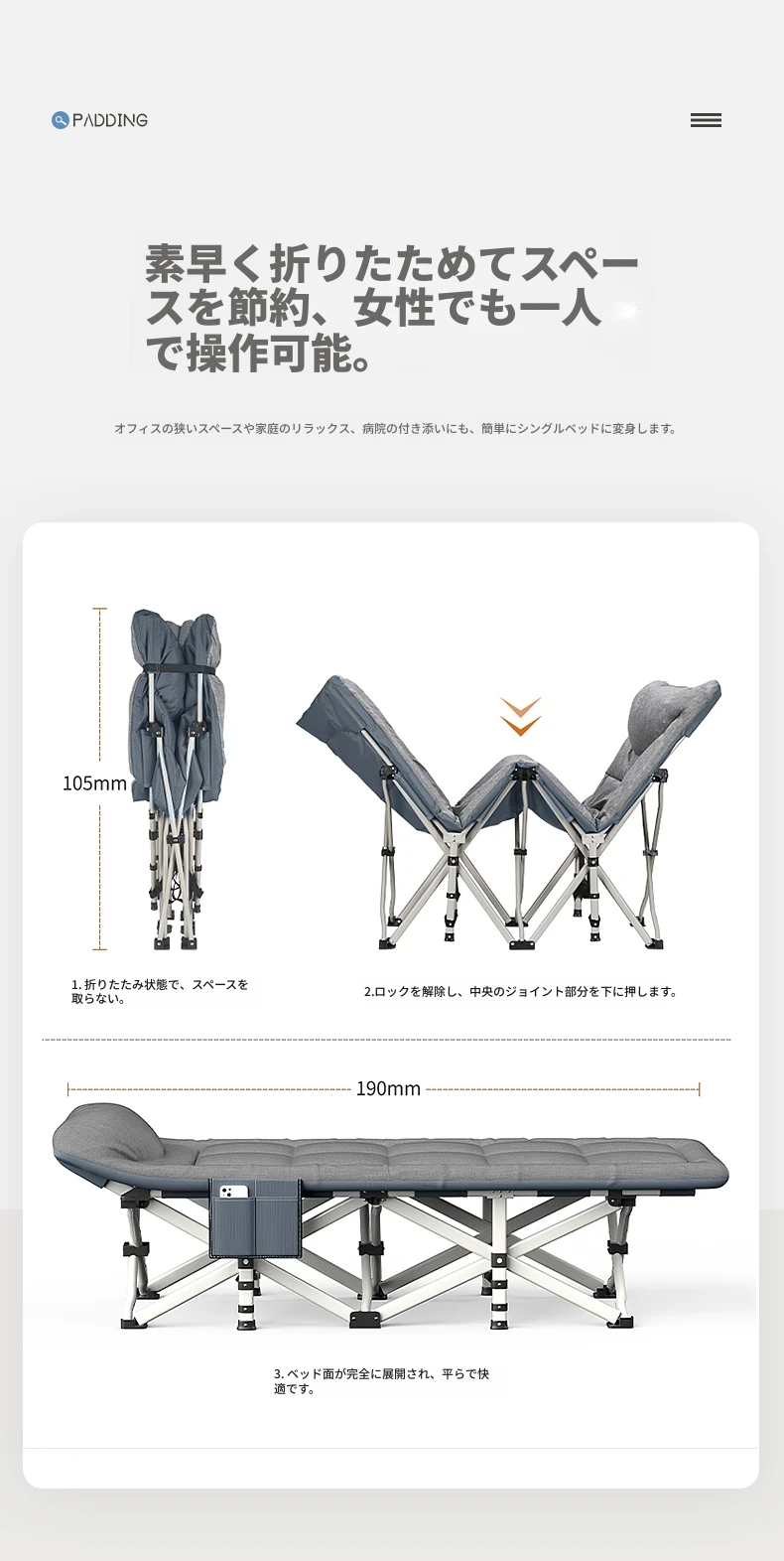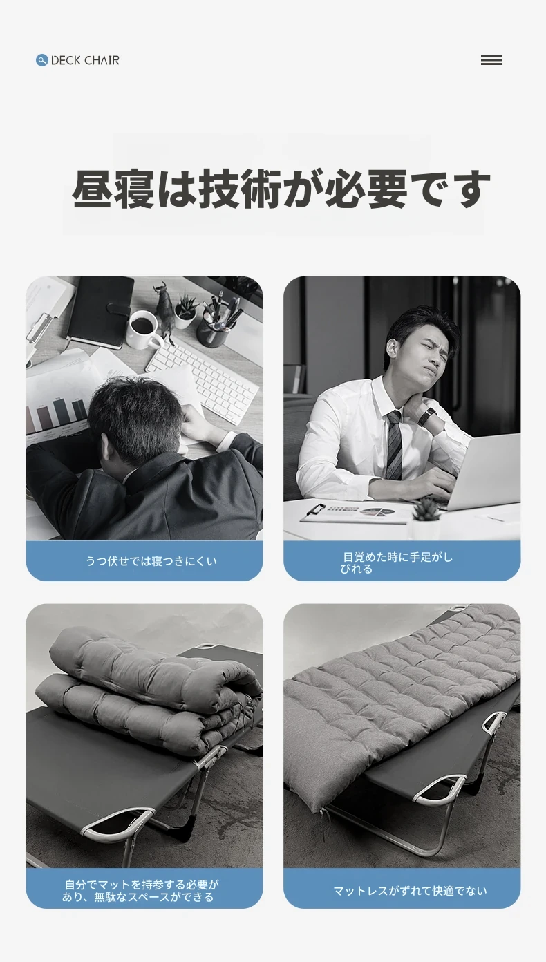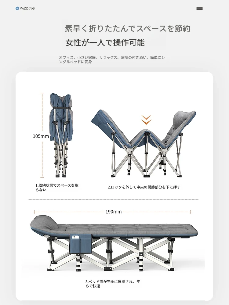 オフィスのお昼寝に最適!折りたたみベッド - 学生寮や家庭、病院の付き添いにもぴったりなポータブルリクライニングチェア。快適な昼休みを実現する必需品!