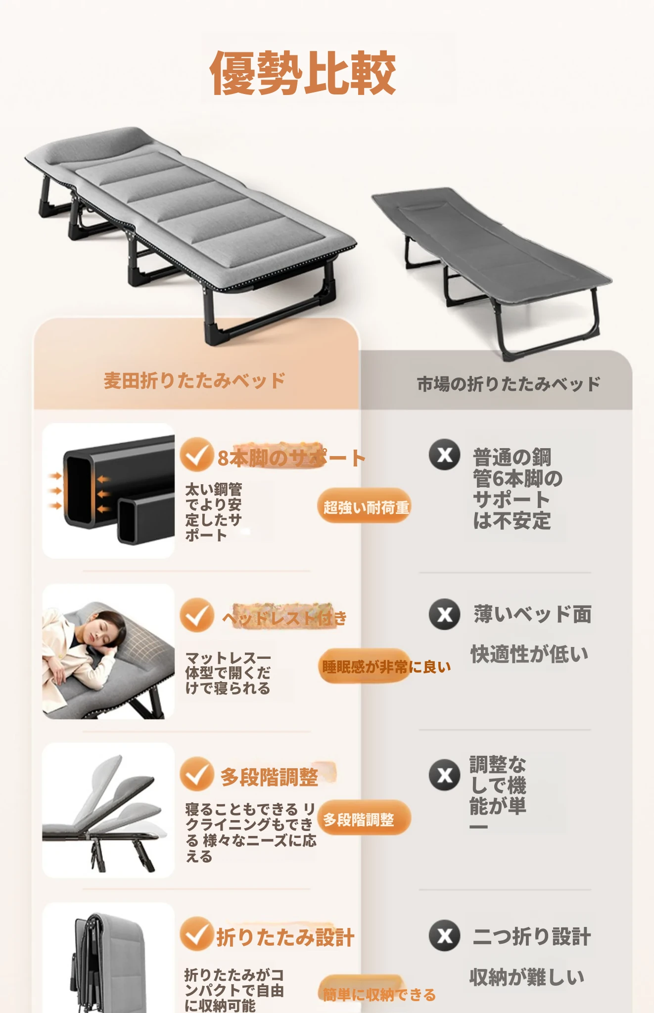 折りたたみベッド オフィスでの昼寝に最適!家庭用シングルサイズの快適な昼寝椅子 医療用の付き添いベッド 簡単に持ち運べるアウトドア用キャンプベッドで、どこでもリラックス!