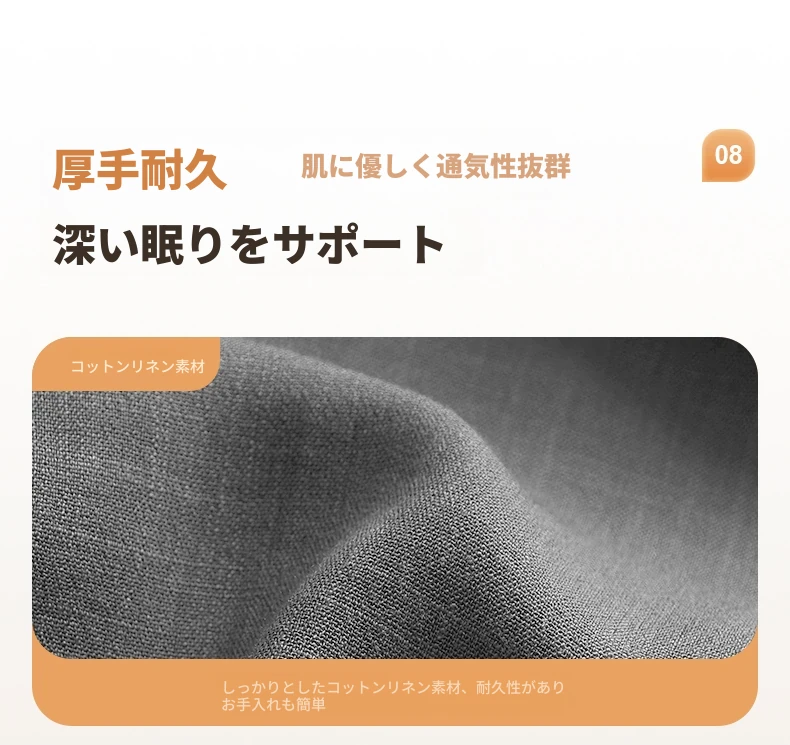 【太い角管】通気性のあるコットンリネン/グレー+グレーのエアコン毛布