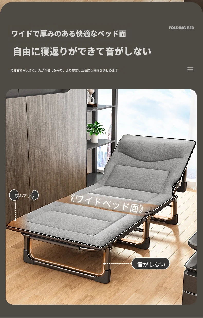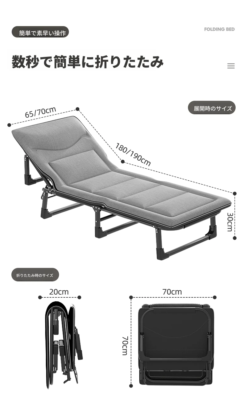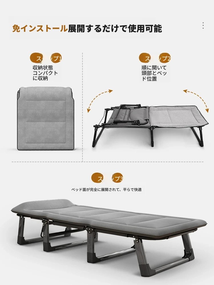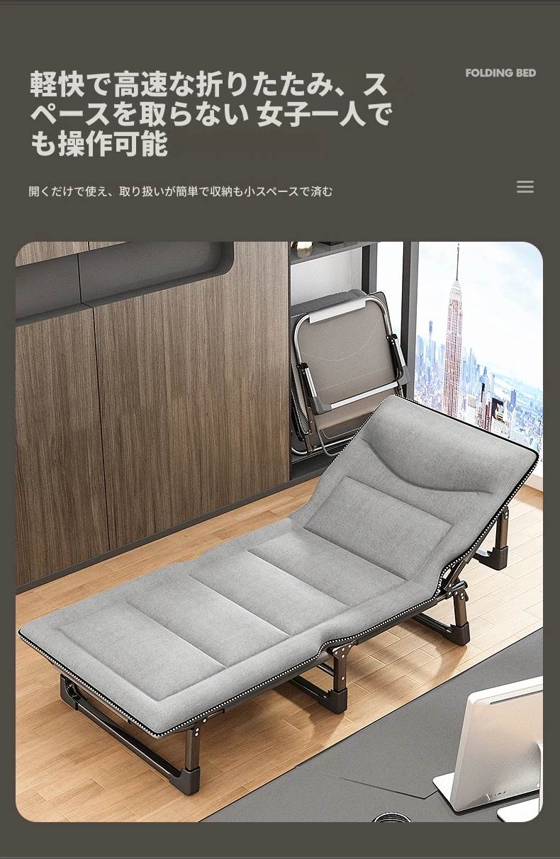 昼寝に最適!折りたたみ式シングルオフィスベッド、持ち運び便利な家庭用リクライニングチェア、簡単に設置できるミニマムキャンプベッド。快適な休息をお届けします!