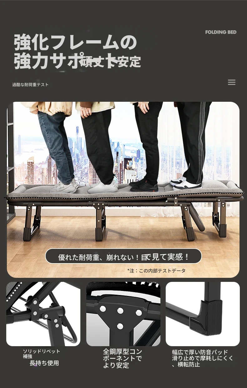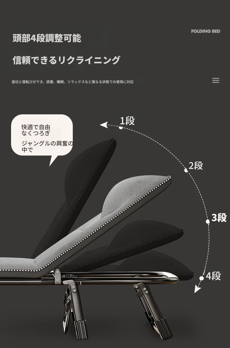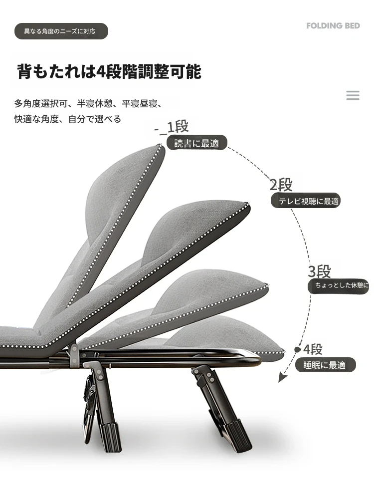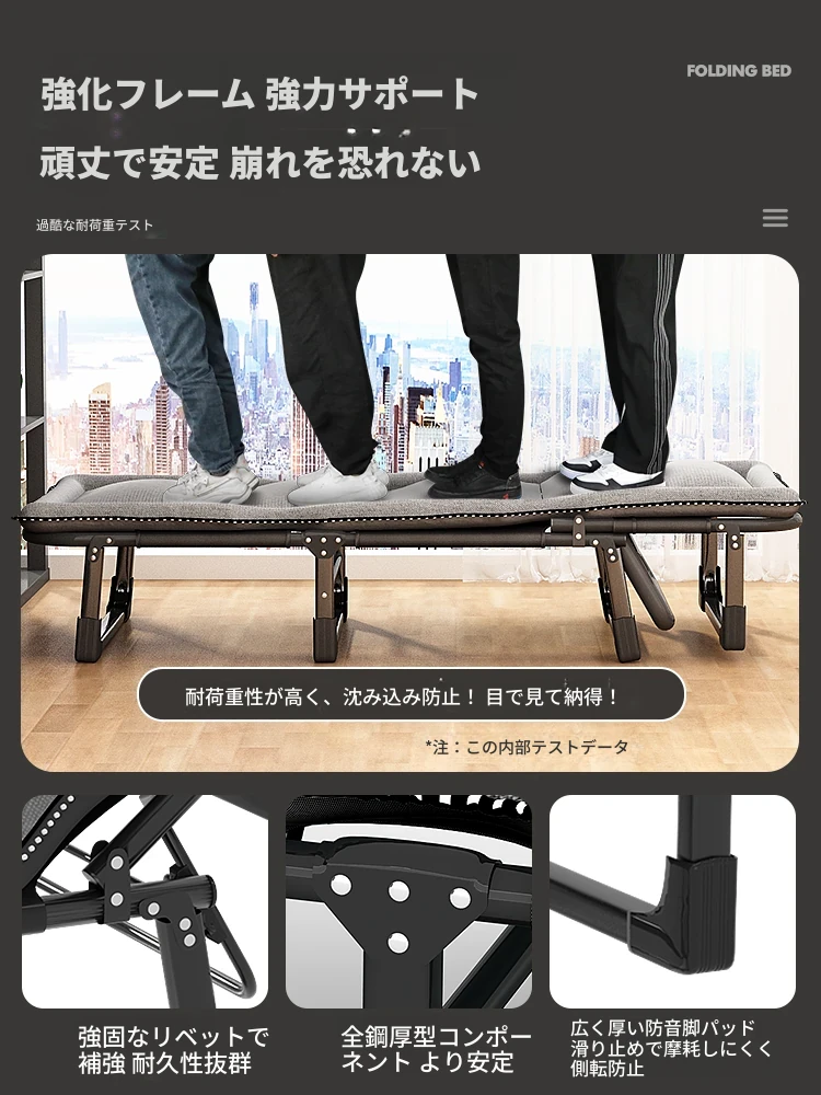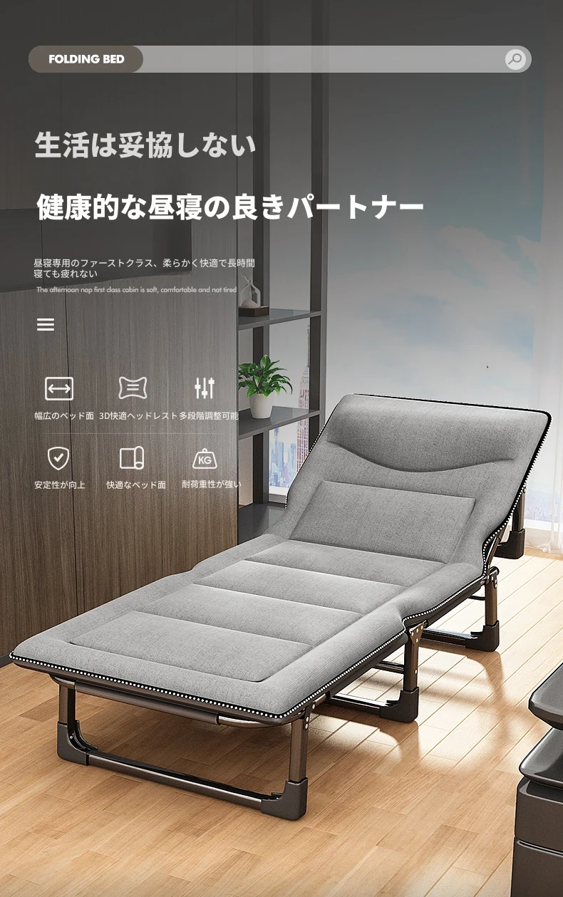 昼寝に最適!折りたたみ式シングルオフィスベッド、持ち運び便利な家庭用リクライニングチェア、簡単に設置できるミニマムキャンプベッド。快適な休息をお届けします!