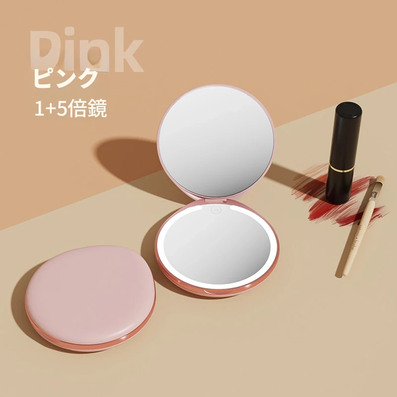 携帯用両面鏡-ピンク【三色調整可/1倍+5倍】