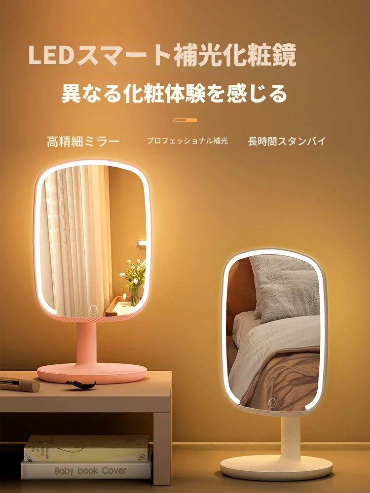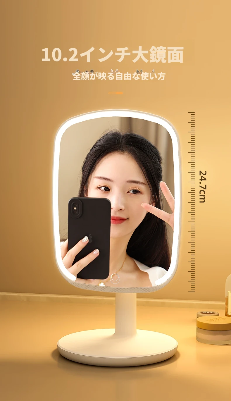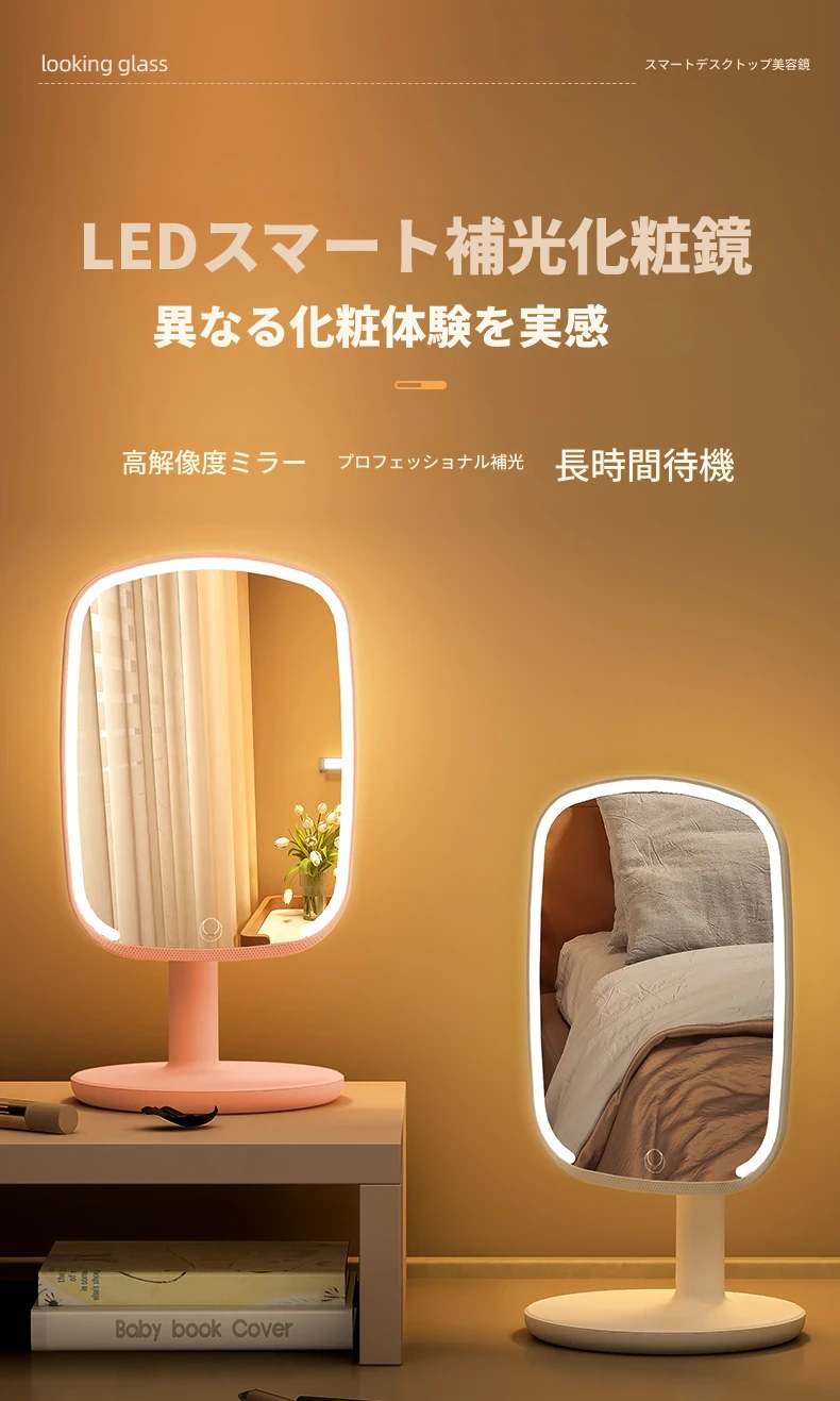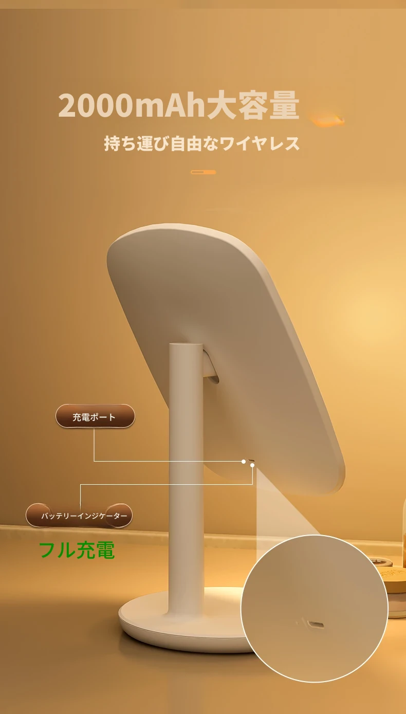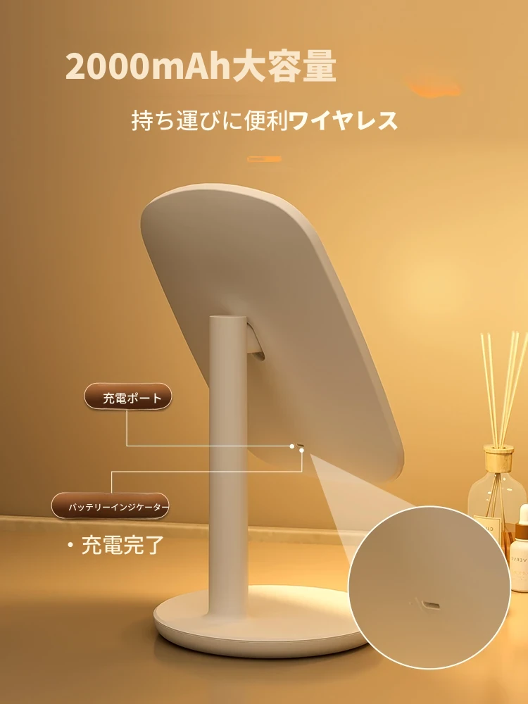LED化粧鏡 - 明るさ調整可能な卓上ミラー、学生寮にも最適!持ち運び便利、クリアな映像でメイクアップが楽しくなる美の必需品!