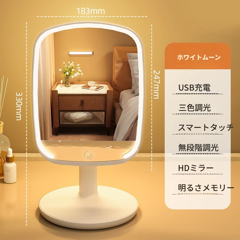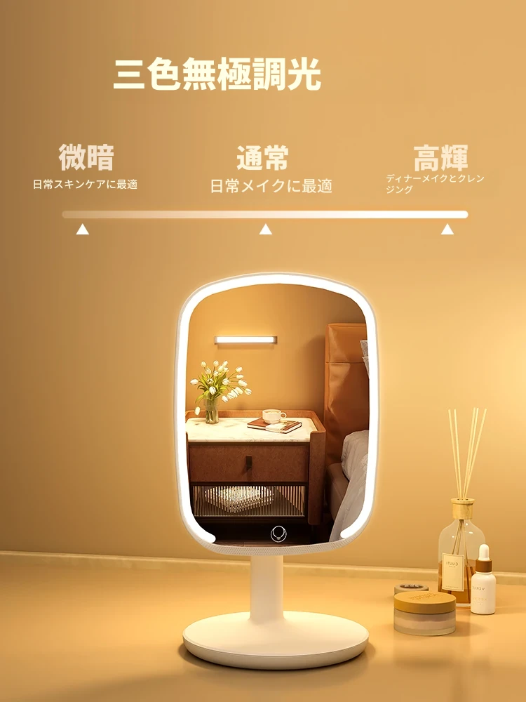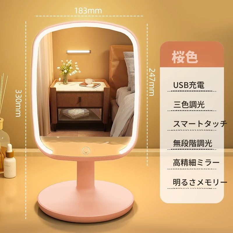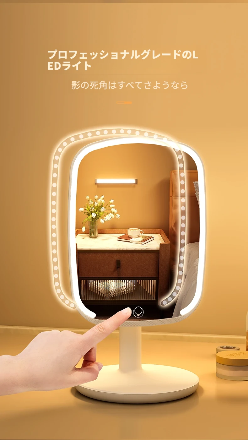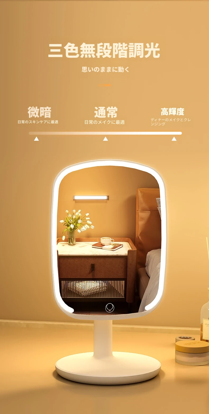 LED化粧鏡 - 明るさ調整可能な卓上ミラー、学生寮にも最適!持ち運び便利、クリアな映像でメイクアップが楽しくなる美の必需品!