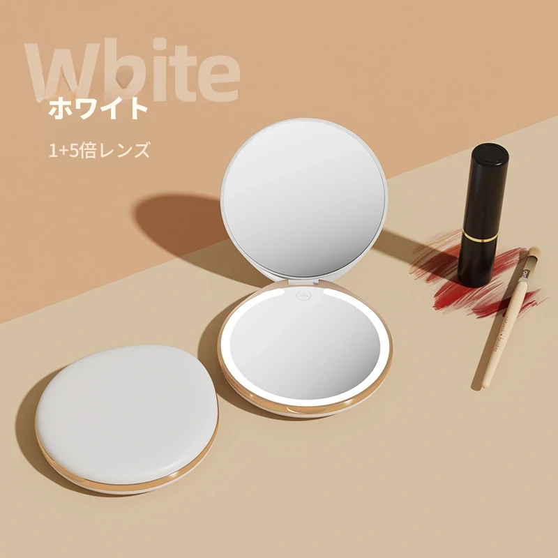 携帯用両面鏡-ホワイト【三色調整可/1倍+5倍】