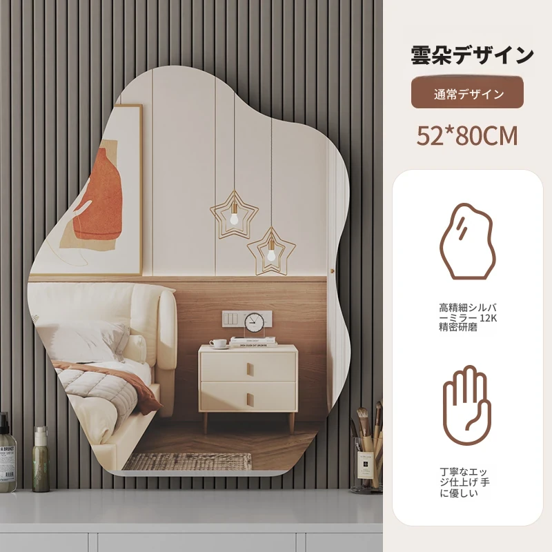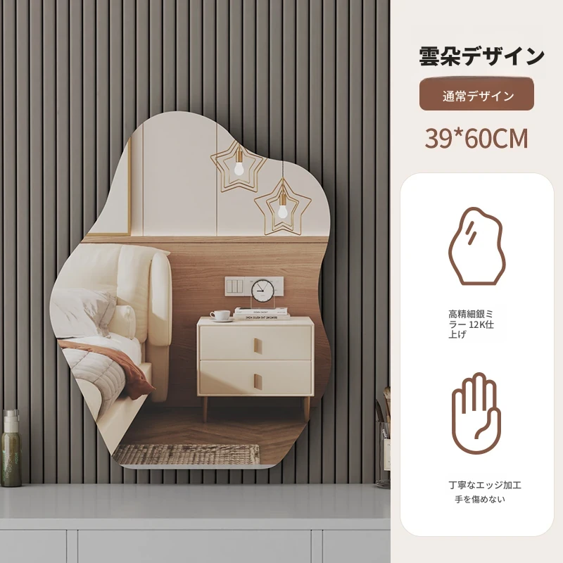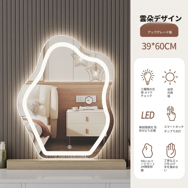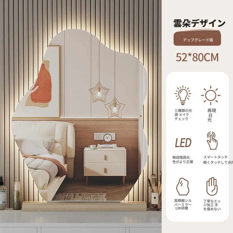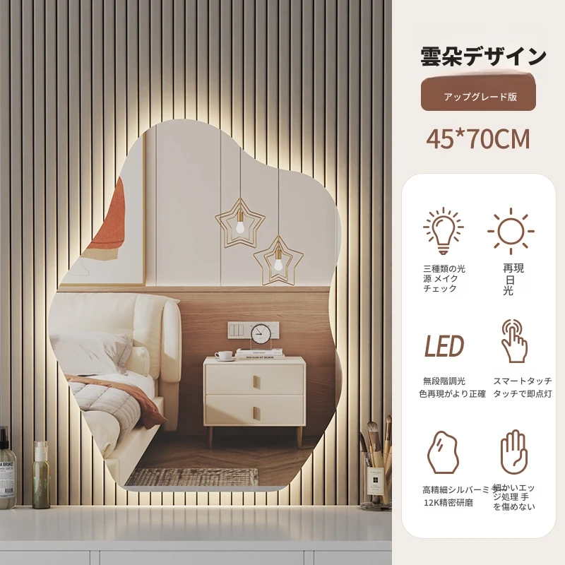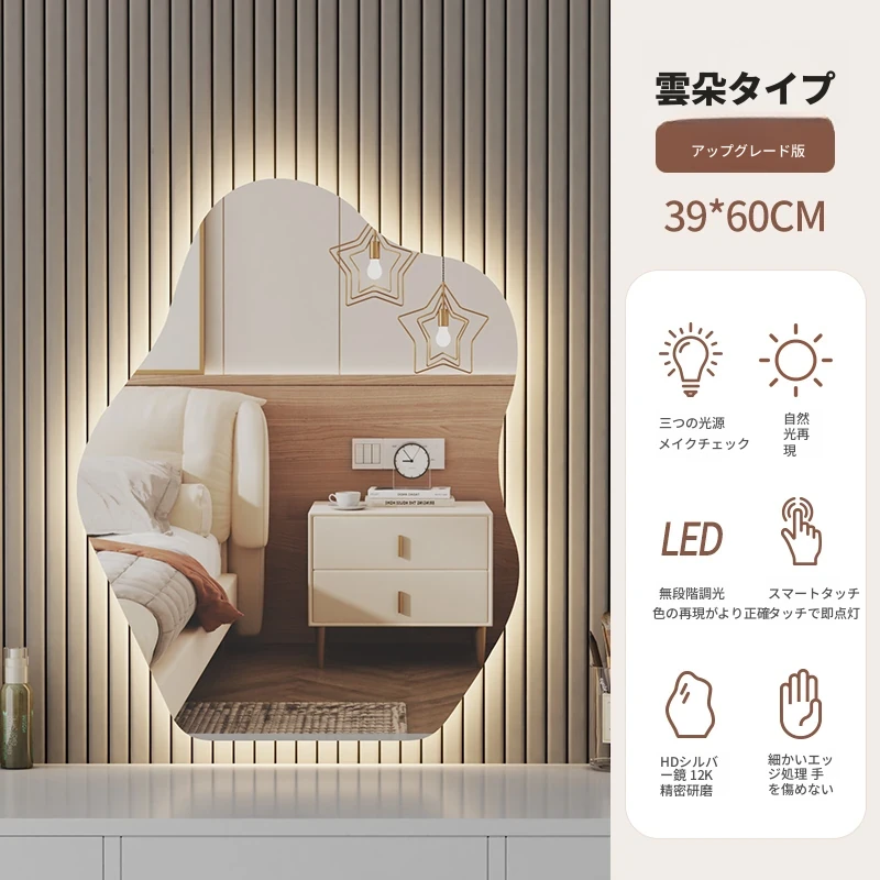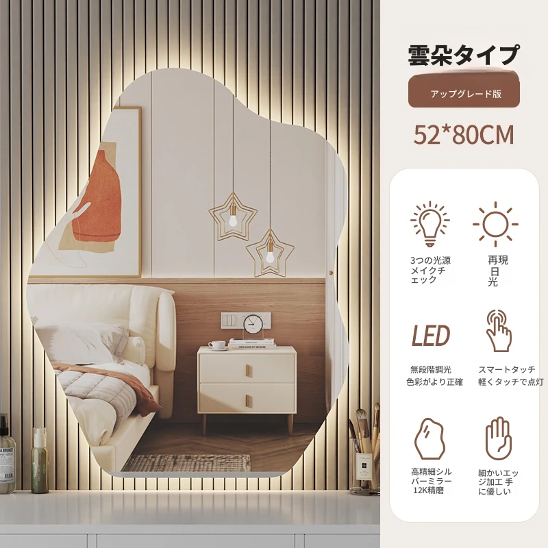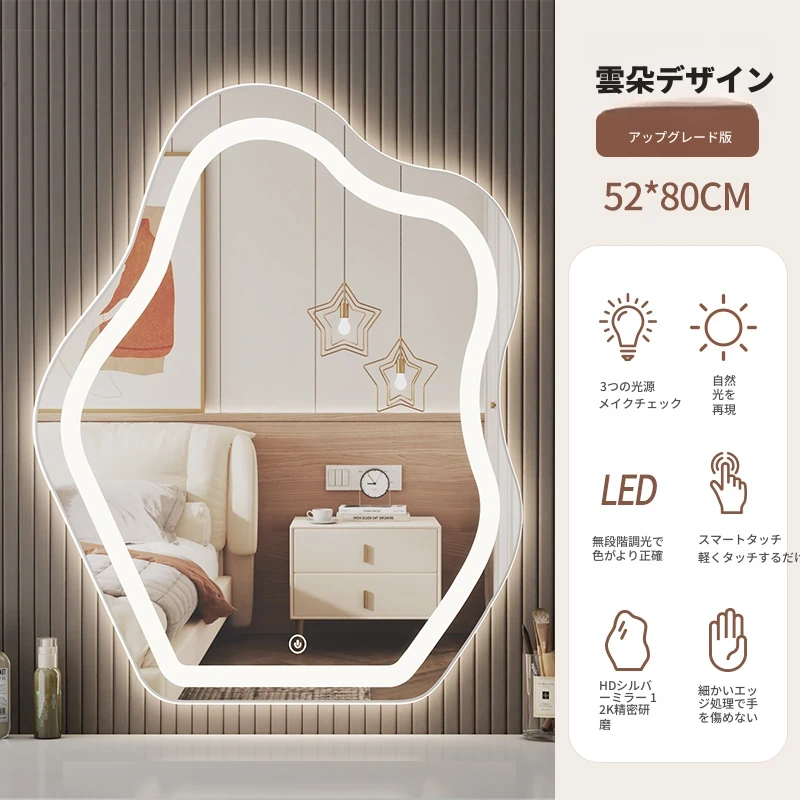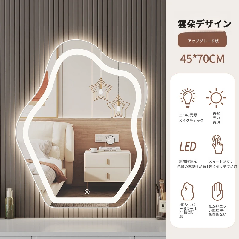 スマート壁掛けクラウドLED化粧鏡 - おしゃれなデザインで、照明付きの異形鏡。お部屋を明るく演出し、毎日のメイクアップを楽しくサポートします。あなたの美しさを引き立てる必需品!