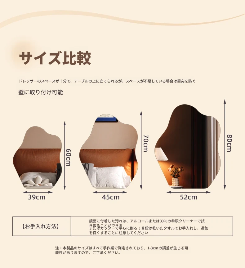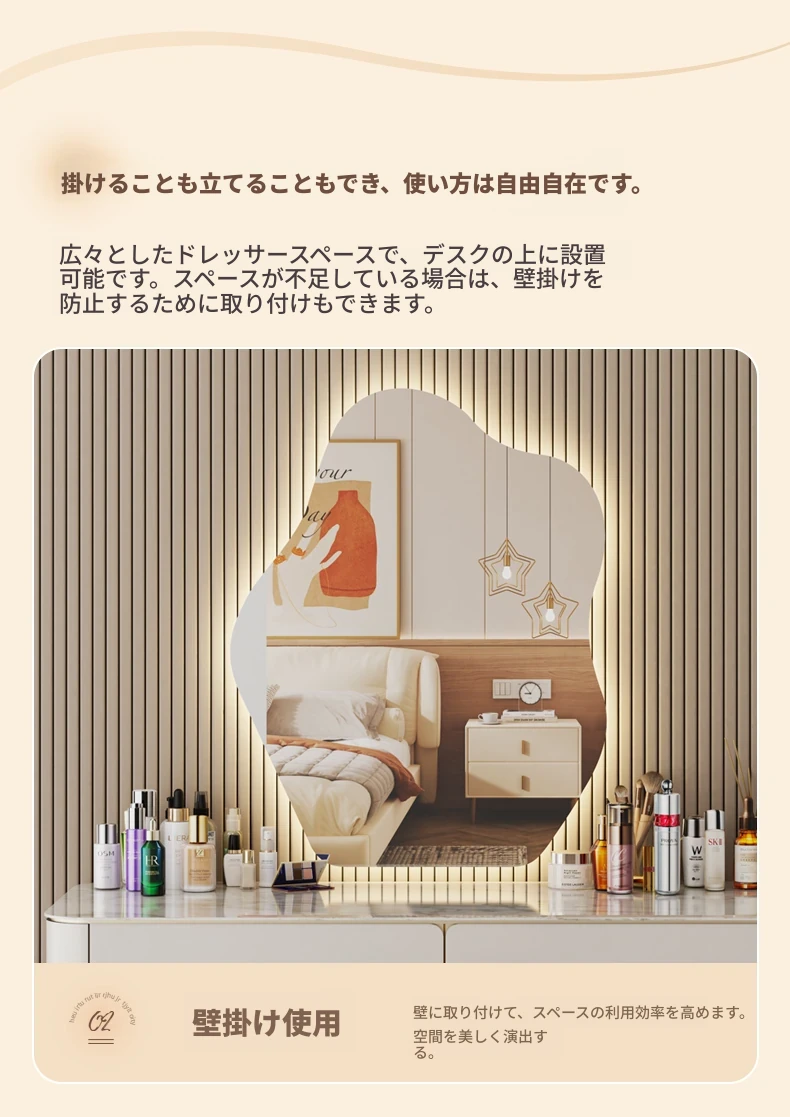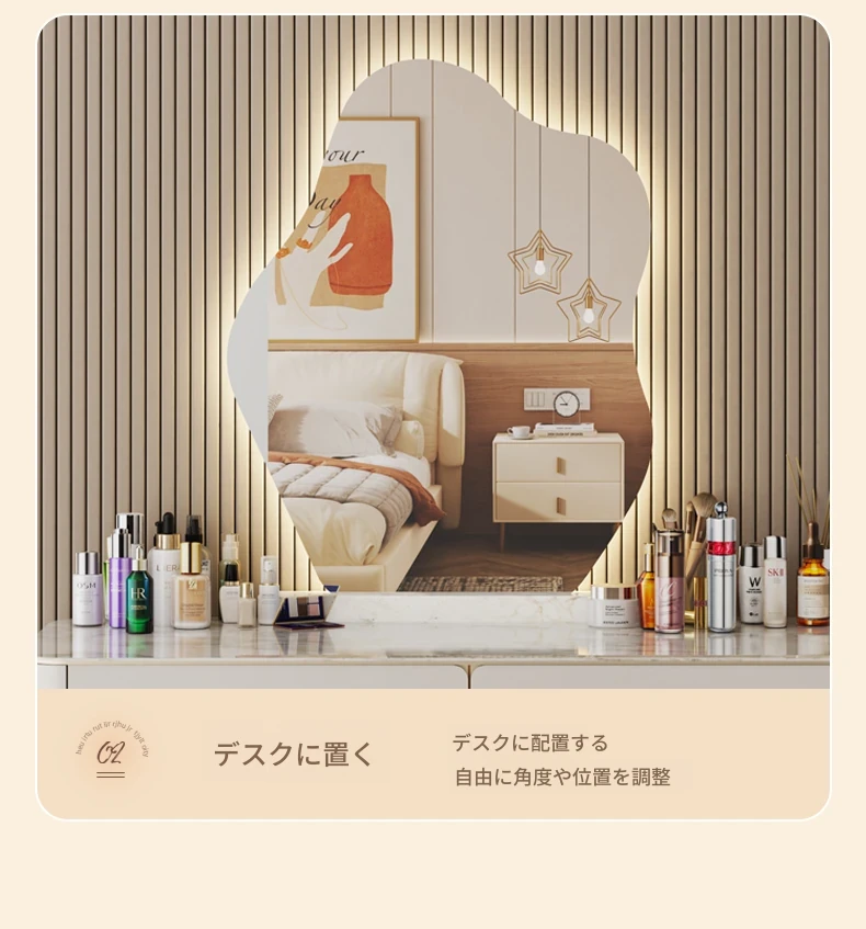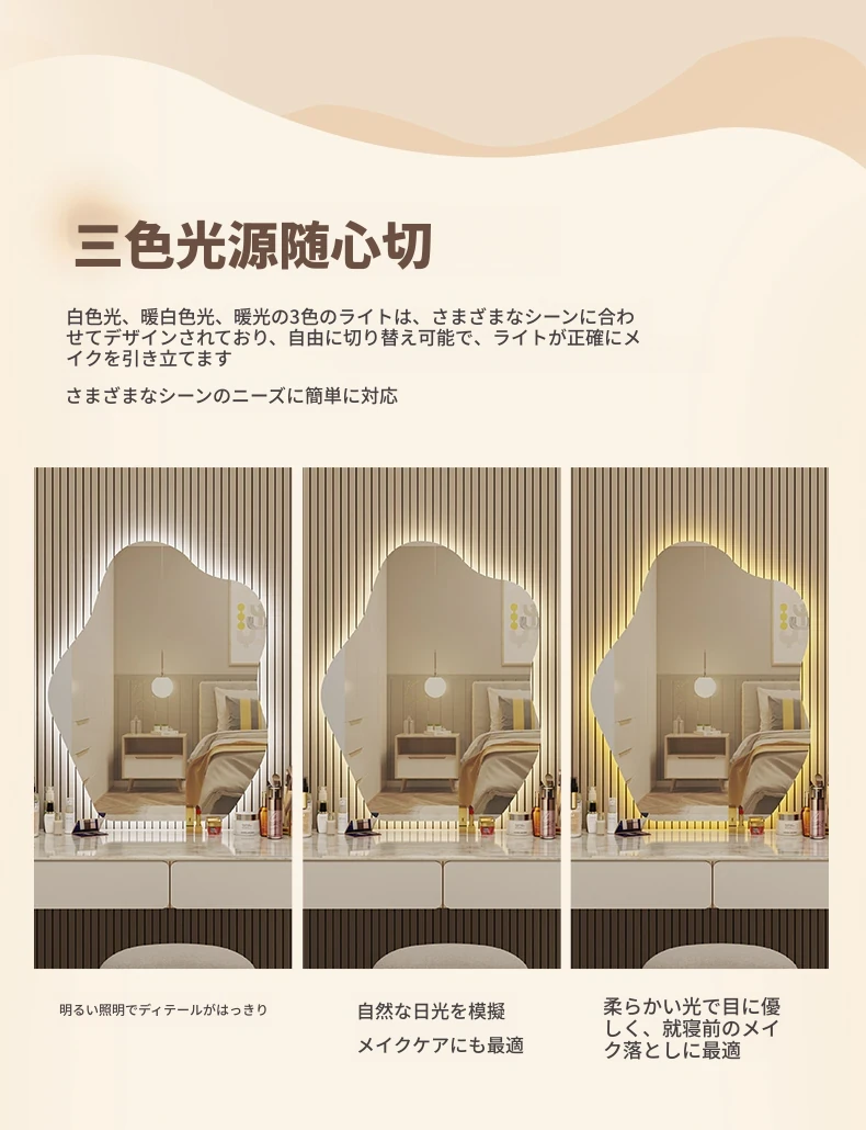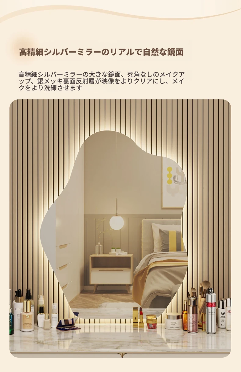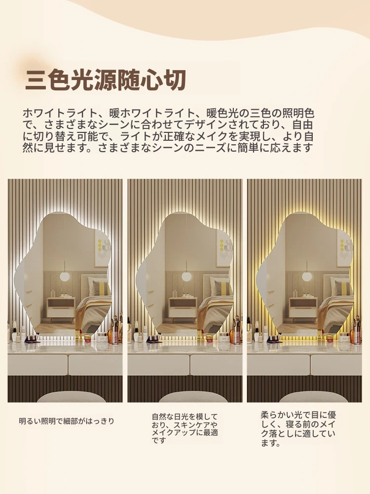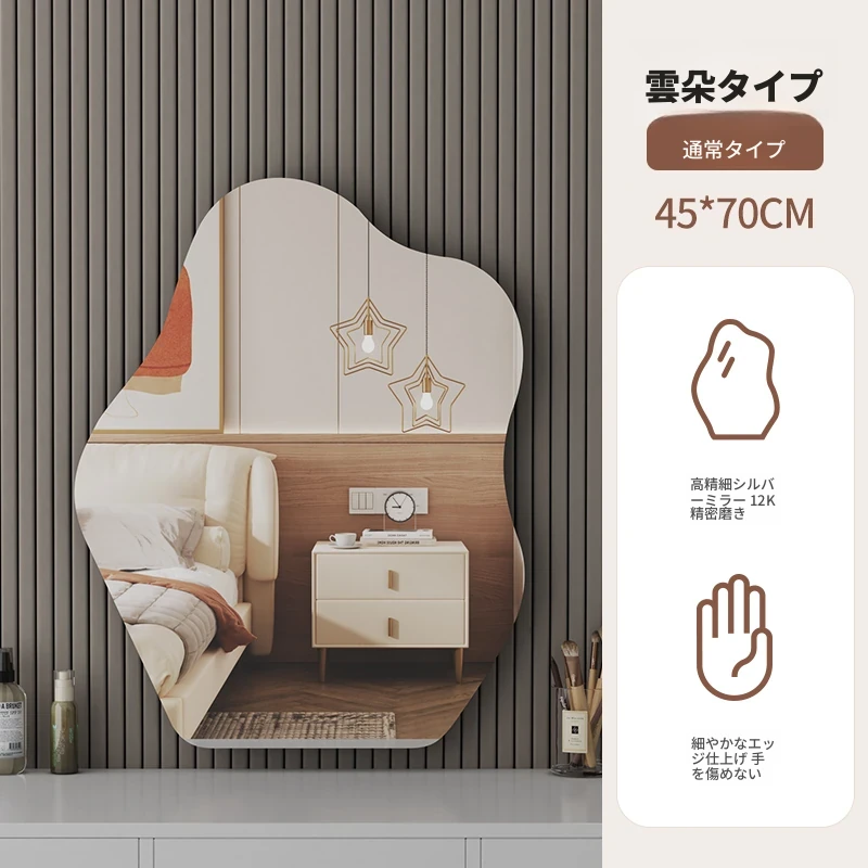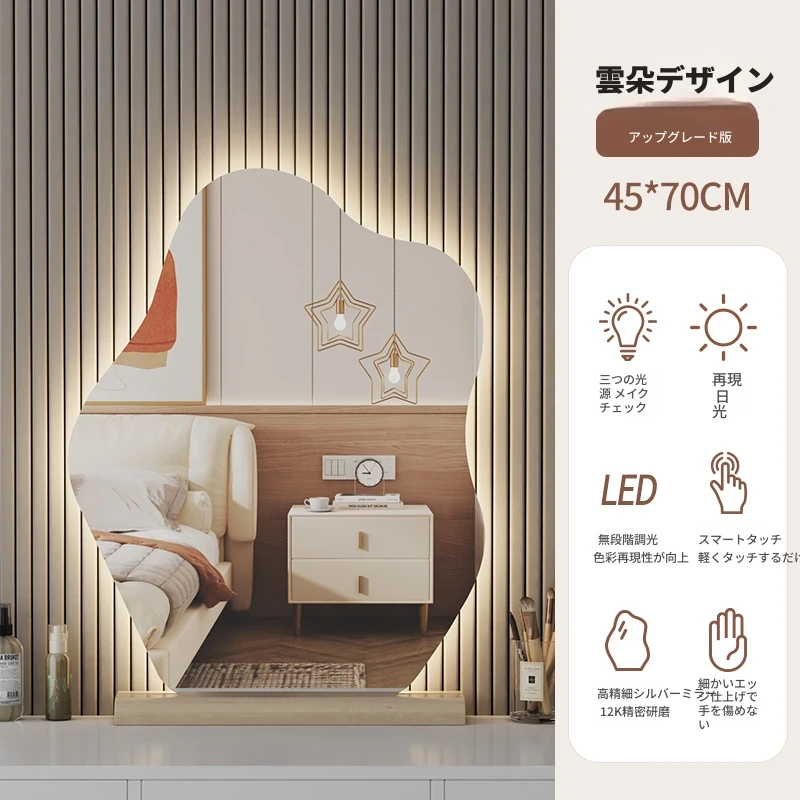 スマート壁掛けクラウドLED化粧鏡 - おしゃれなデザインで、照明付きの異形鏡。お部屋を明るく演出し、毎日のメイクアップを楽しくサポートします。あなたの美しさを引き立てる必需品!