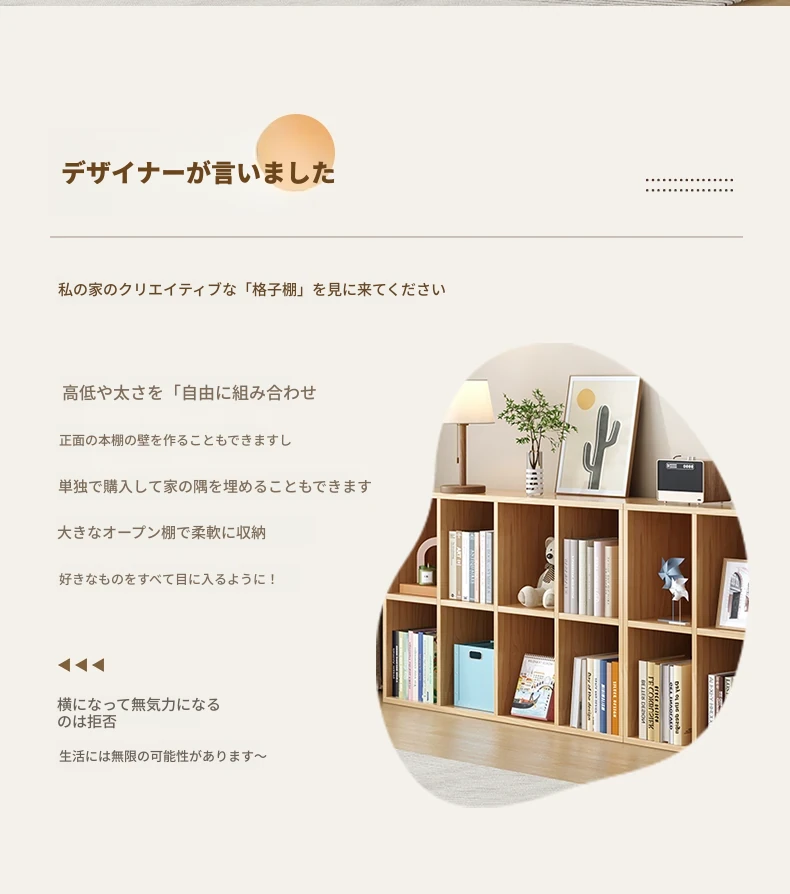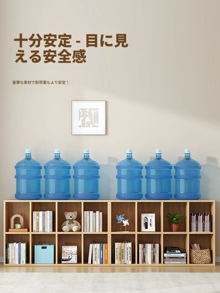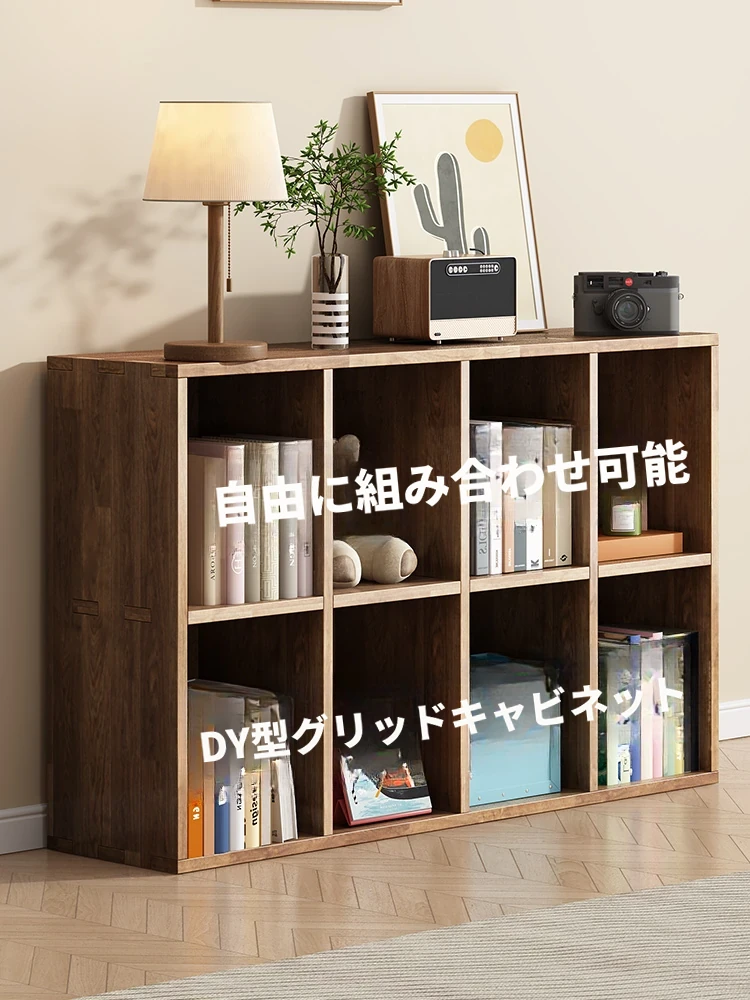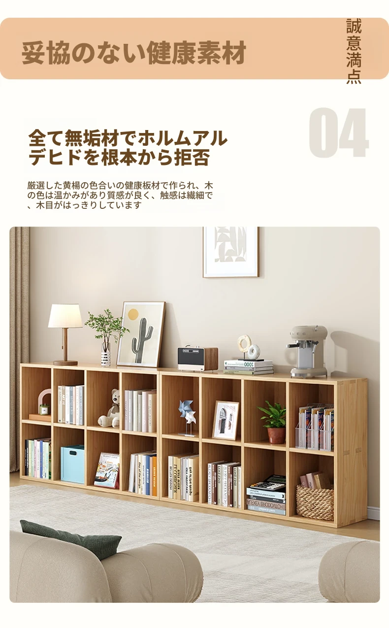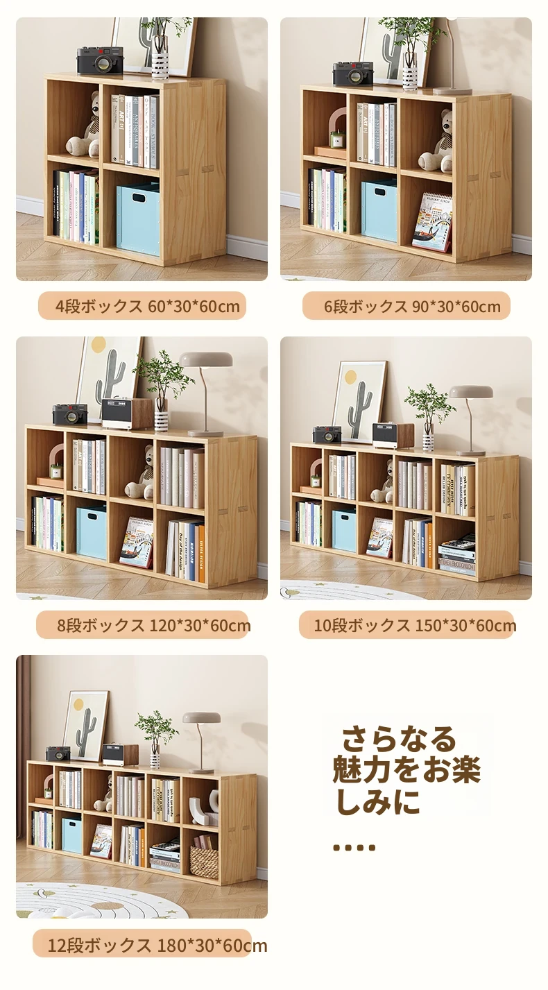 天然木製のフロア本棚 - リビングにぴったりな低めの収納キャビネット!子供部屋や幼稚園にも最適なコンビネーションストレージ。美しいデザインで、すっきりとした空間を演出します!