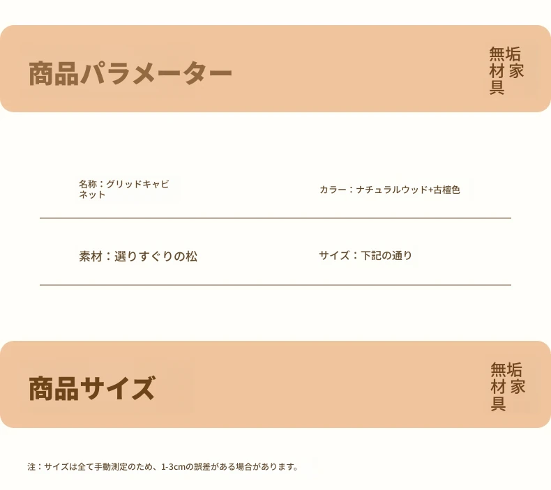 【輸出品質】6格キャビネット★ナチュラルウッド【全木棒接合工法無塗装】