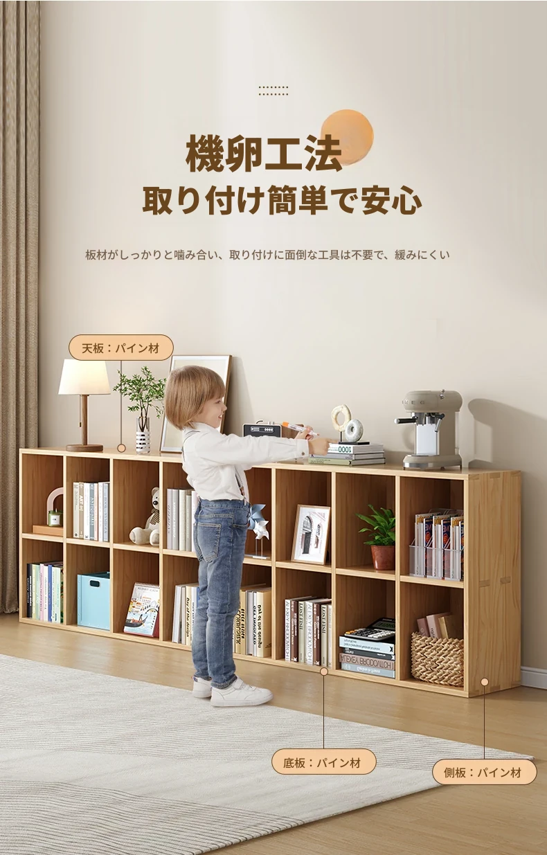 【輸出品質】3段丨12格キャビネット★ナチュラルウッド【全木棒接合工法無塗装】