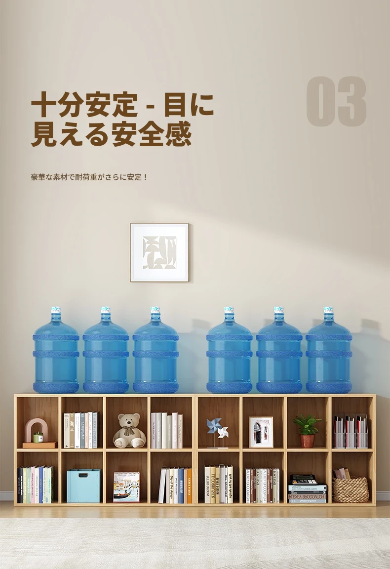 3段丨12格キャビネット★ナチュラルウッド【全木棒接合工法】+衝突防止コーナーパッド