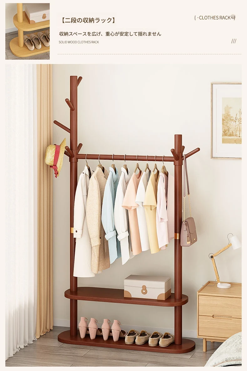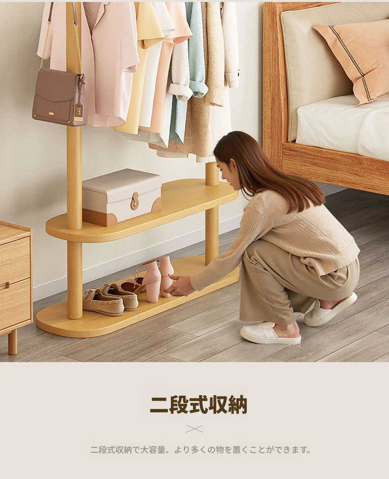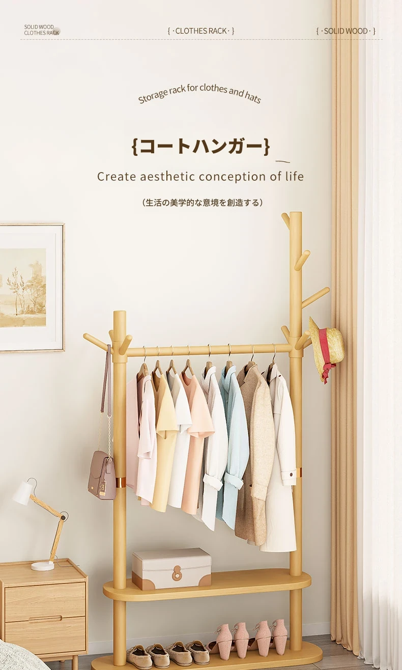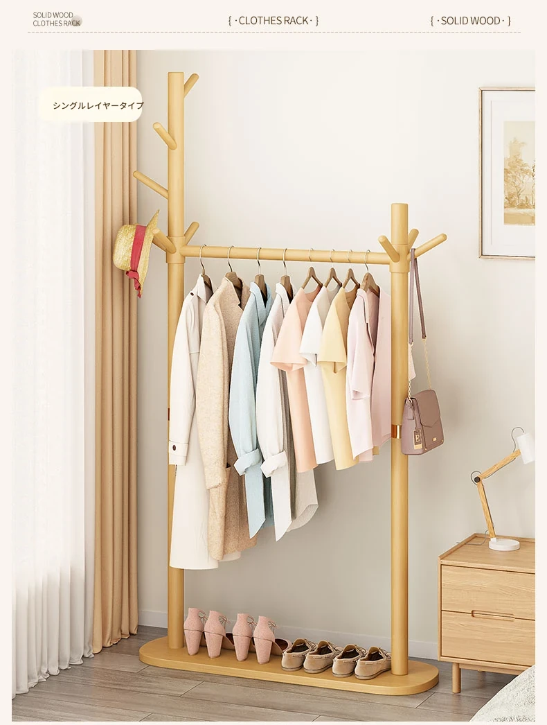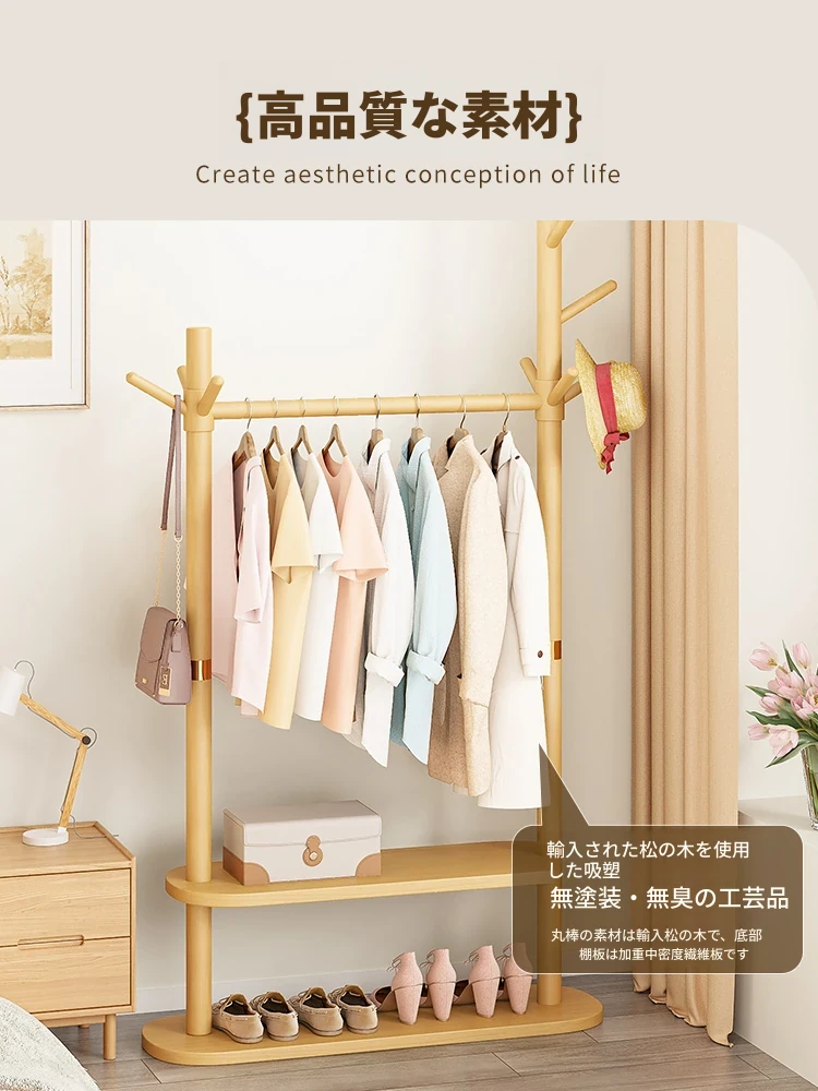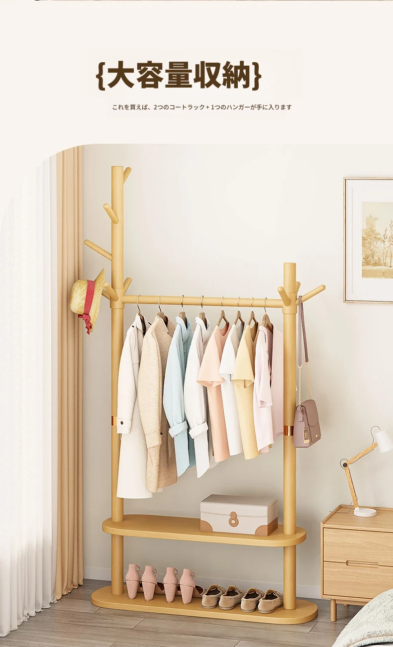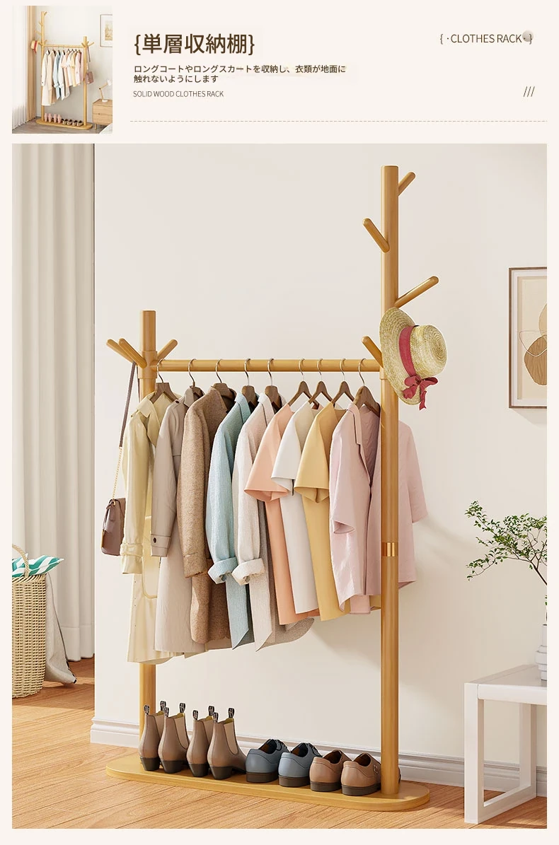 高品質の無垢材製ベッドルーム用コートラック - シンプルでスタイリッシュな立式デザイン、部屋をスッキリ整理!ビーチウッドの衣類干しラックで、使いやすさと美しさを両立。あなたの空間を魅力的に演出します!