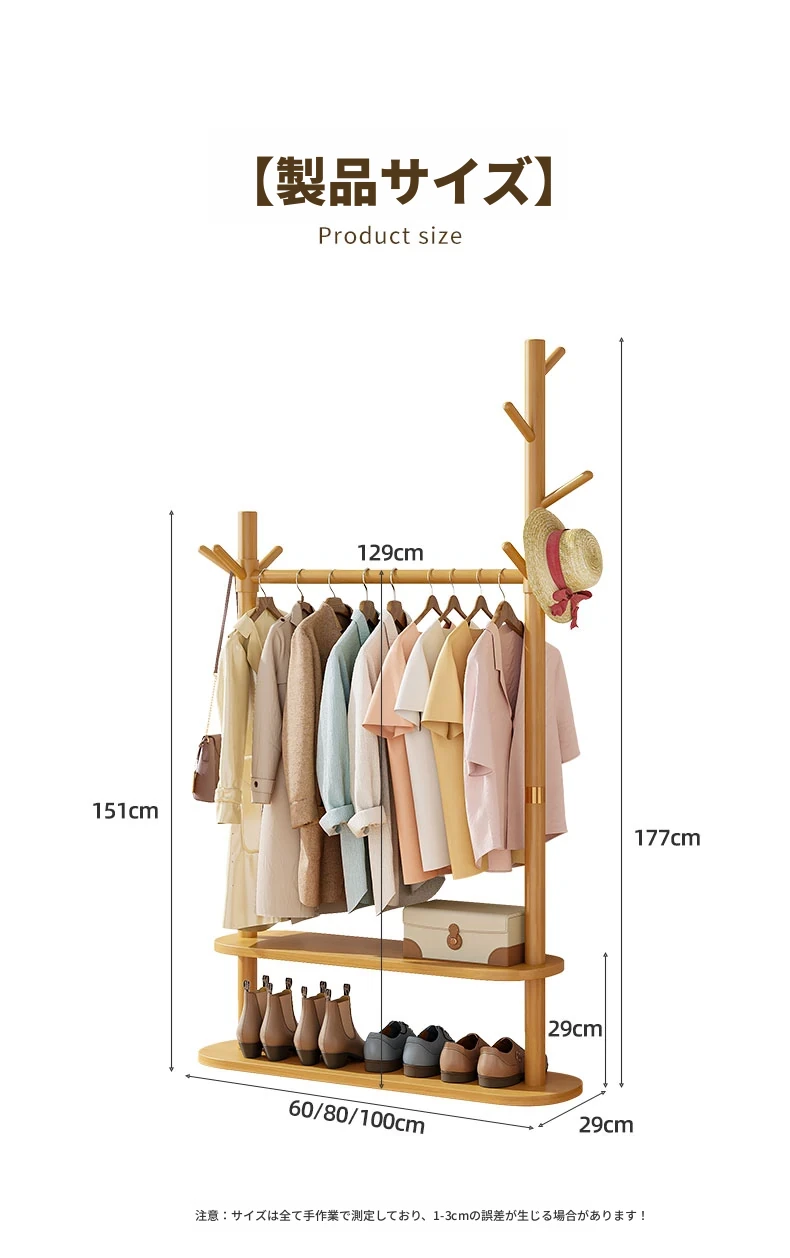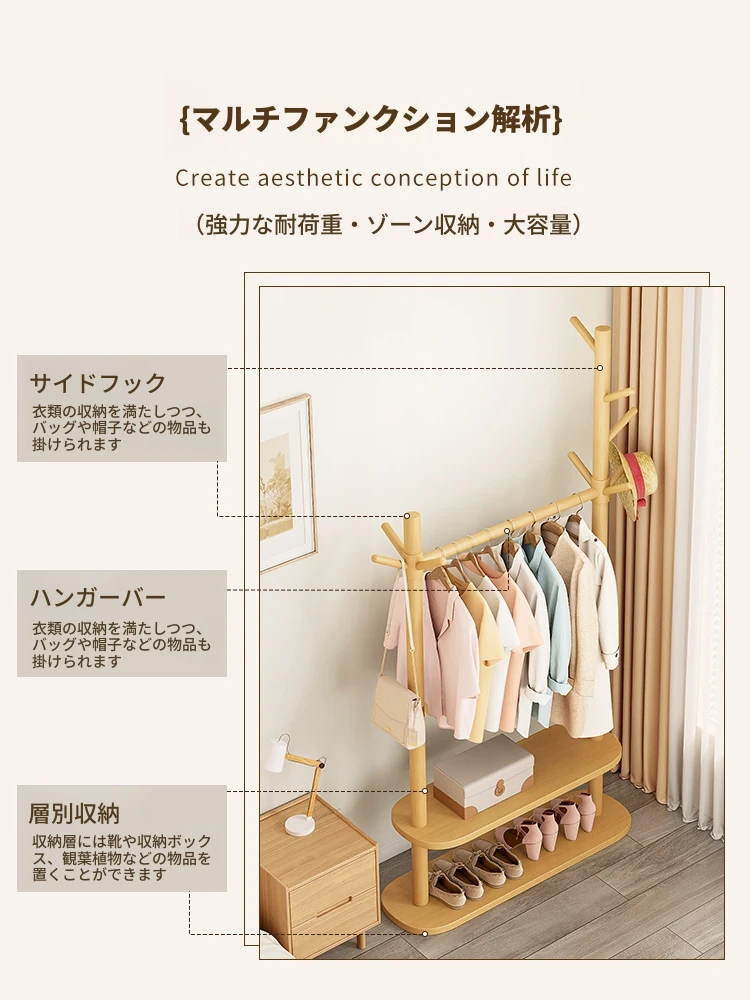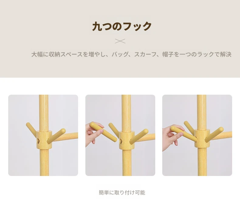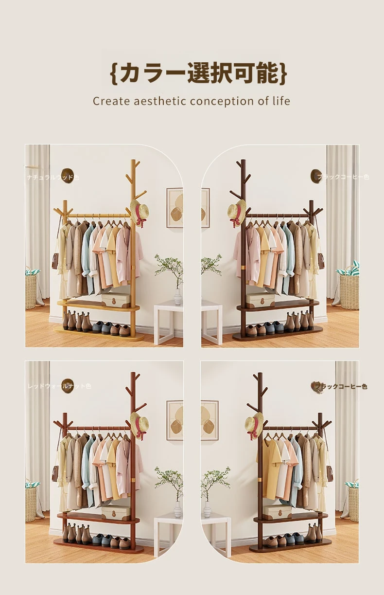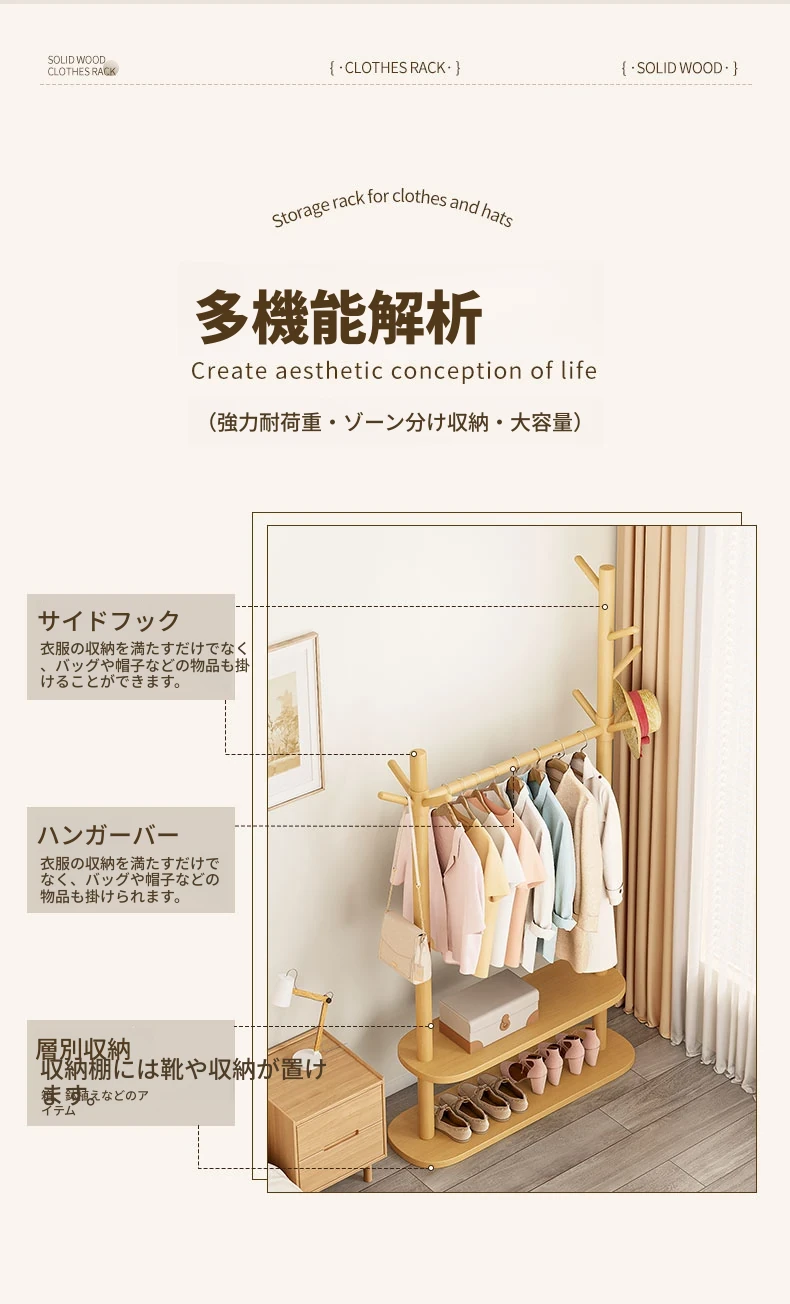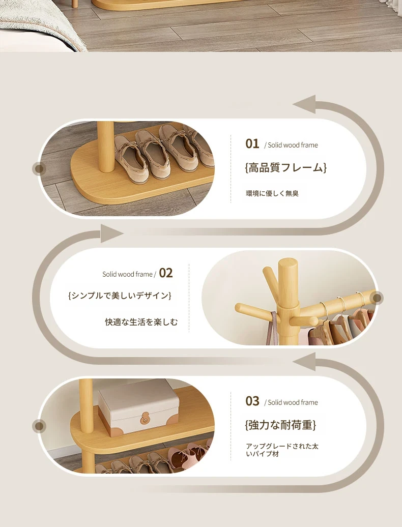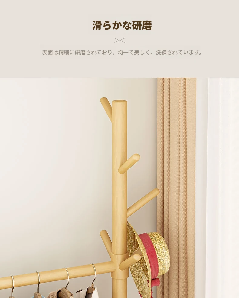 高品質の無垢材製ベッドルーム用コートラック - シンプルでスタイリッシュな立式デザイン、部屋をスッキリ整理!ビーチウッドの衣類干しラックで、使いやすさと美しさを両立。あなたの空間を魅力的に演出します!