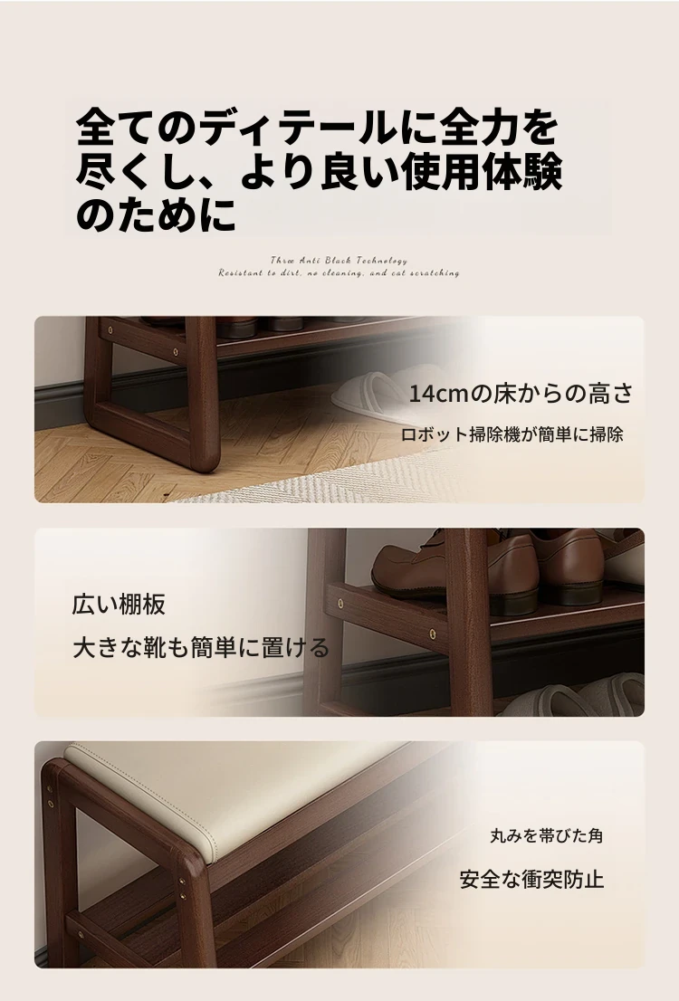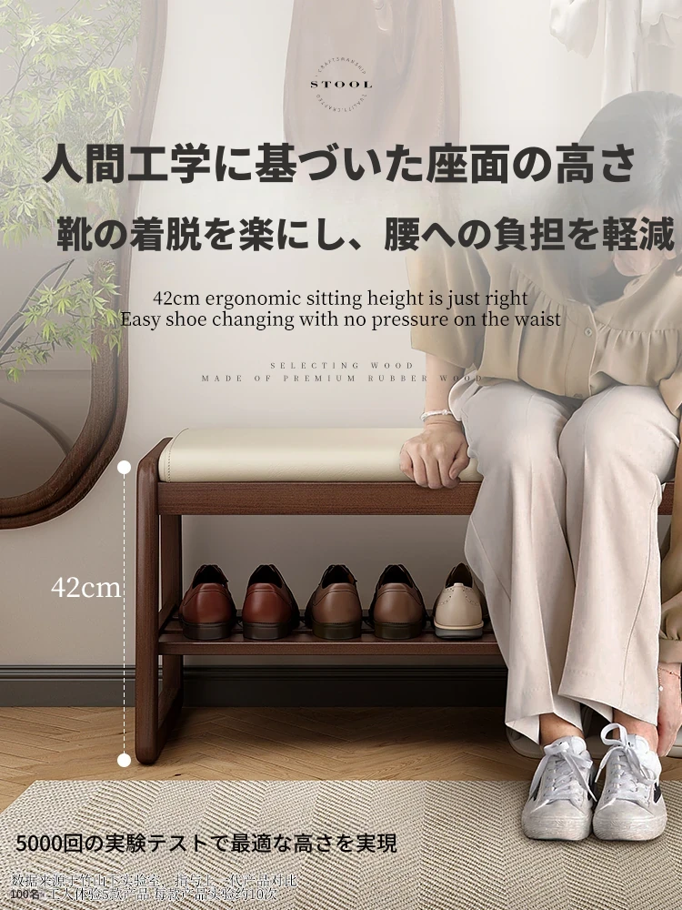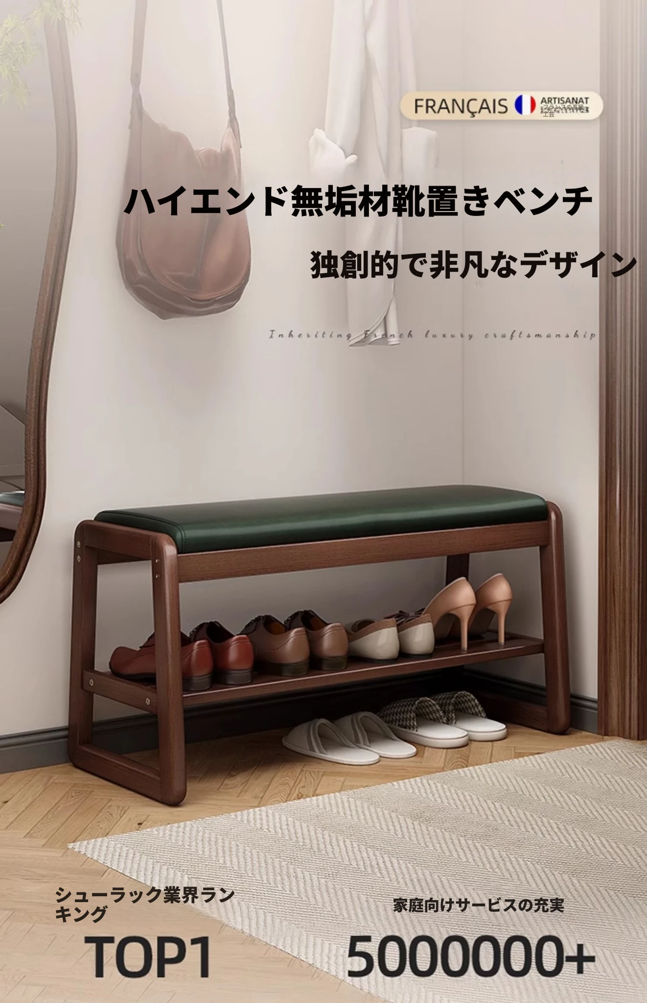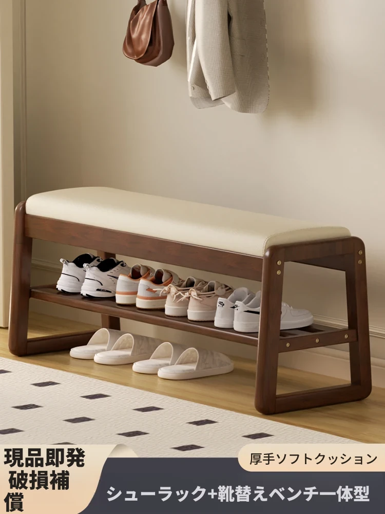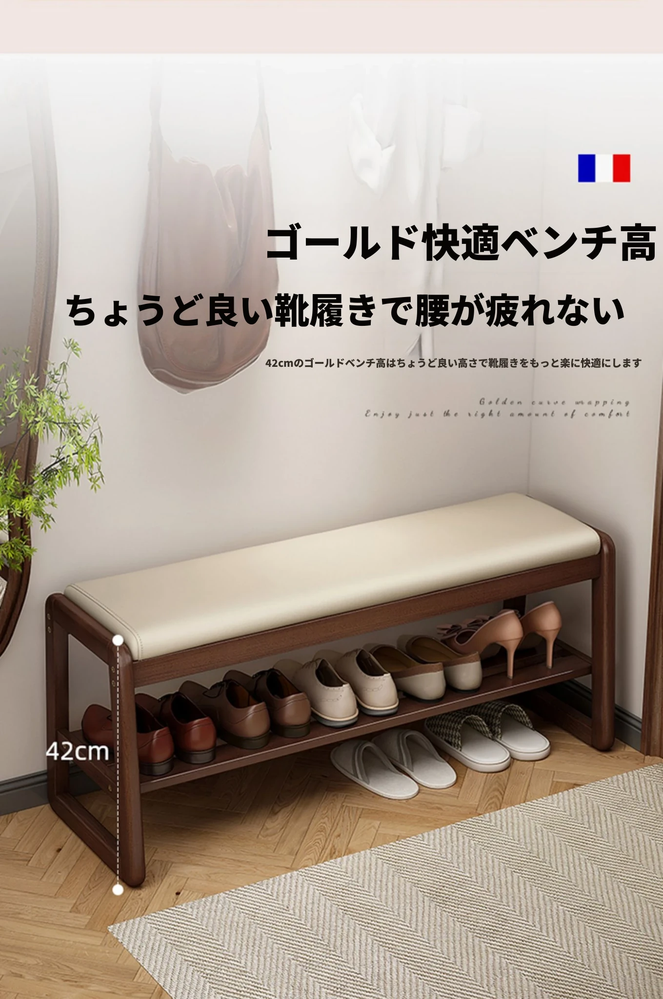 高級天然木製シューズベンチ - 家庭用エントランス収納・靴置き・ソフトパッド付きで快適座り心地!玄関をスタイリッシュに演出し、靴をすっきり整理整頓。多機能で、あなたの生活空間をより便利に!