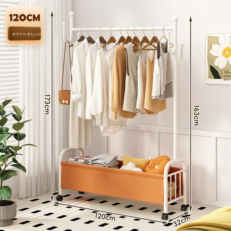 【ホワイトオレンジ120cm】太管径⭐️4フック⭐️レザー収納バスケット