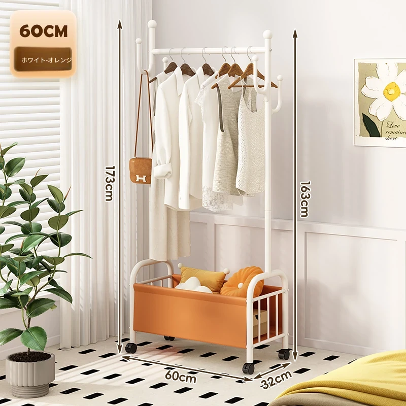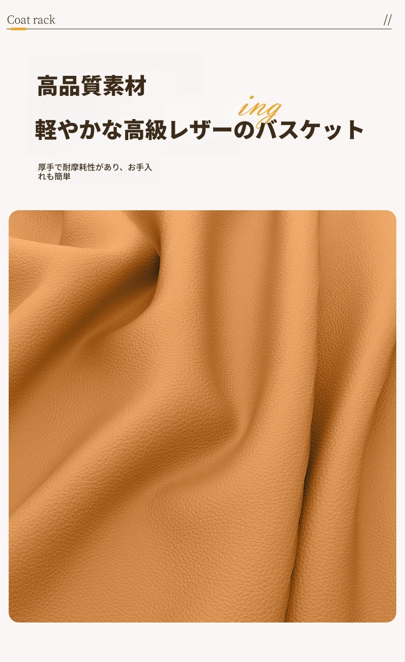 【ホワイトオレンジ60cm】太管径⭐️4フック⭐️レザー収納バスケット