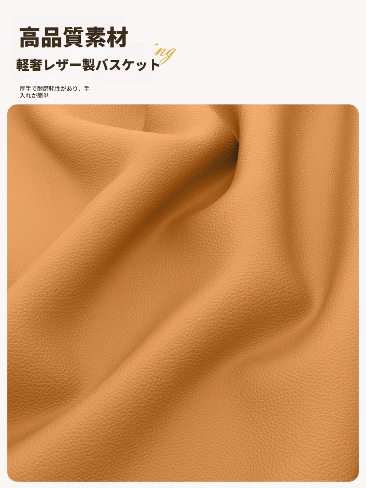 【ホワイトオレンジ80cm】太管径⭐️4フック⭐️レザー収納バスケット