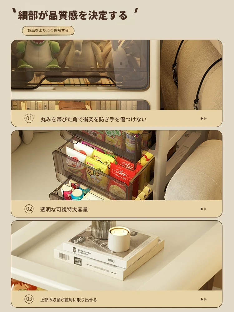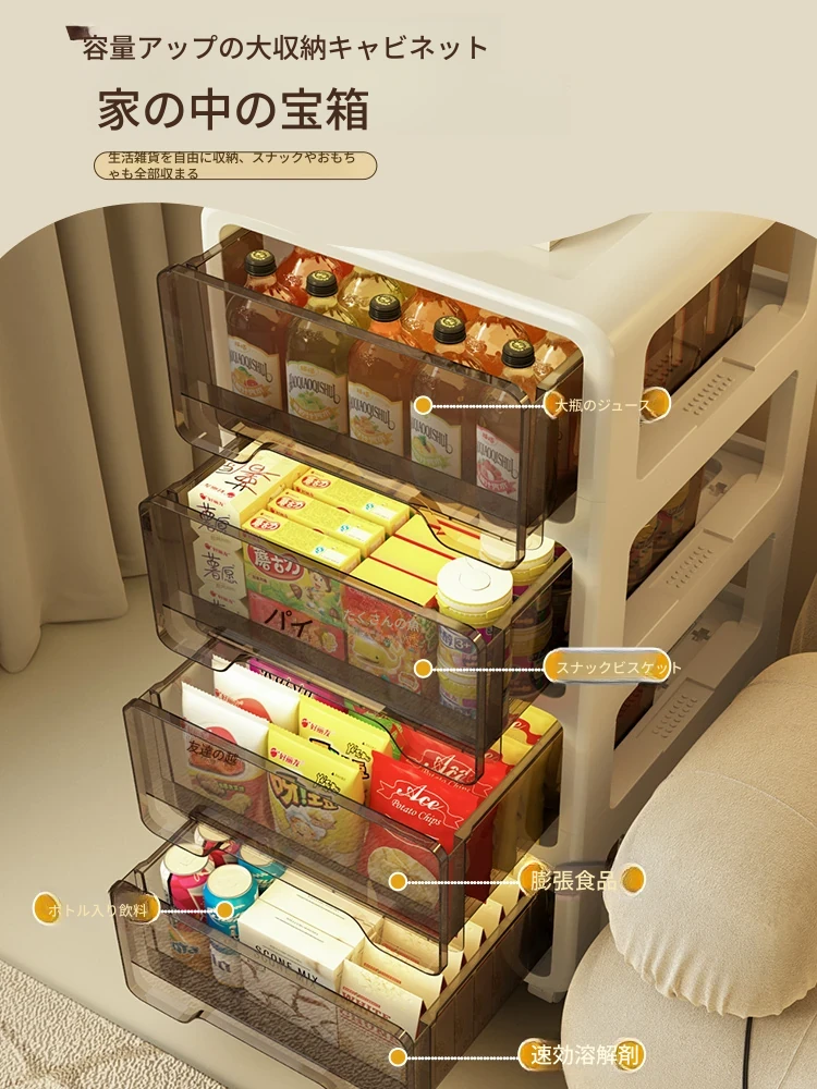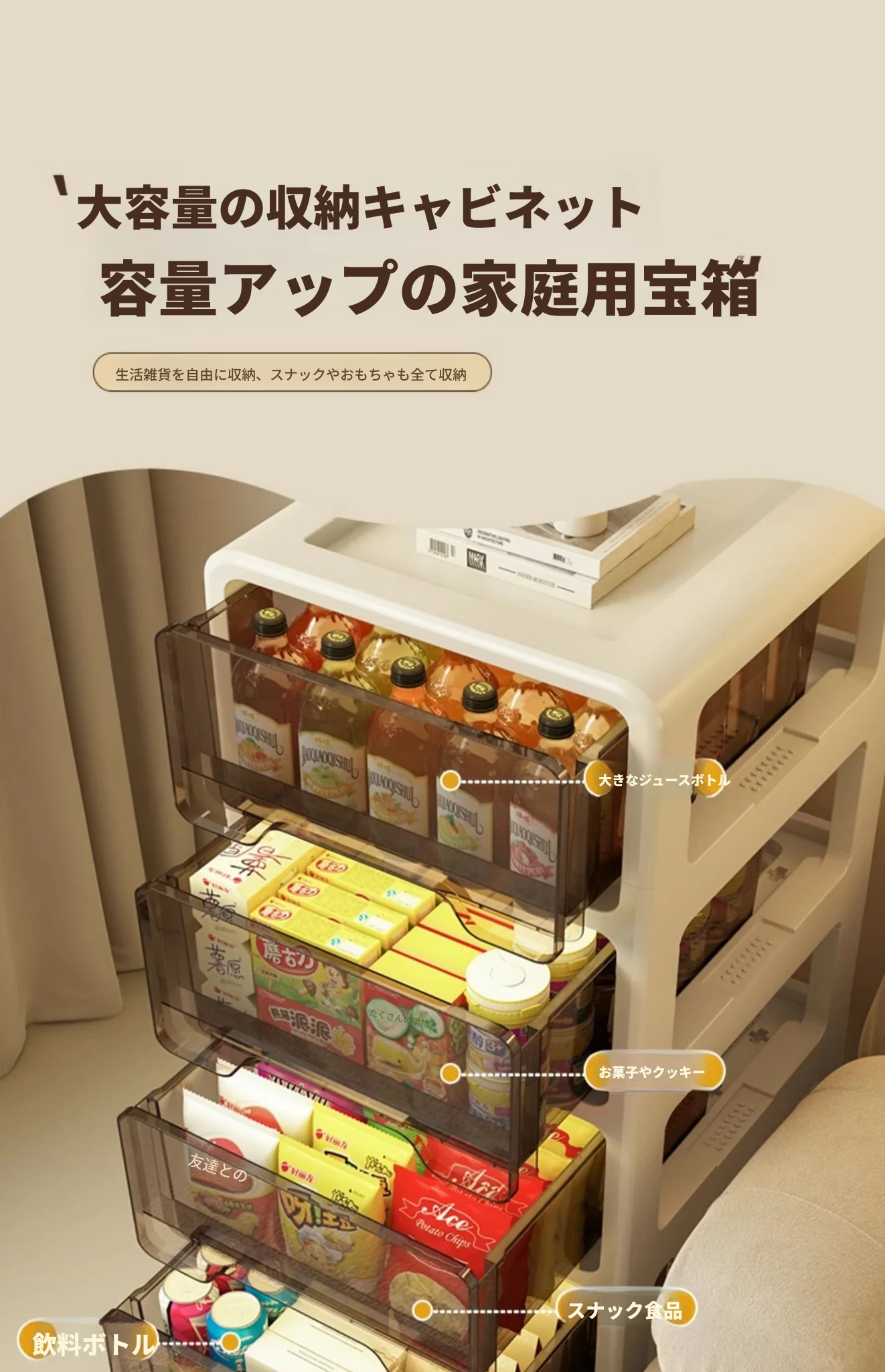 おしゃれな引き出し式収納キャビネット!家庭用スナックラック、女性の寝室やバスルームに最適な化粧品収納カート。限られたスペースを有効活用して、すっきりと整理整頓!