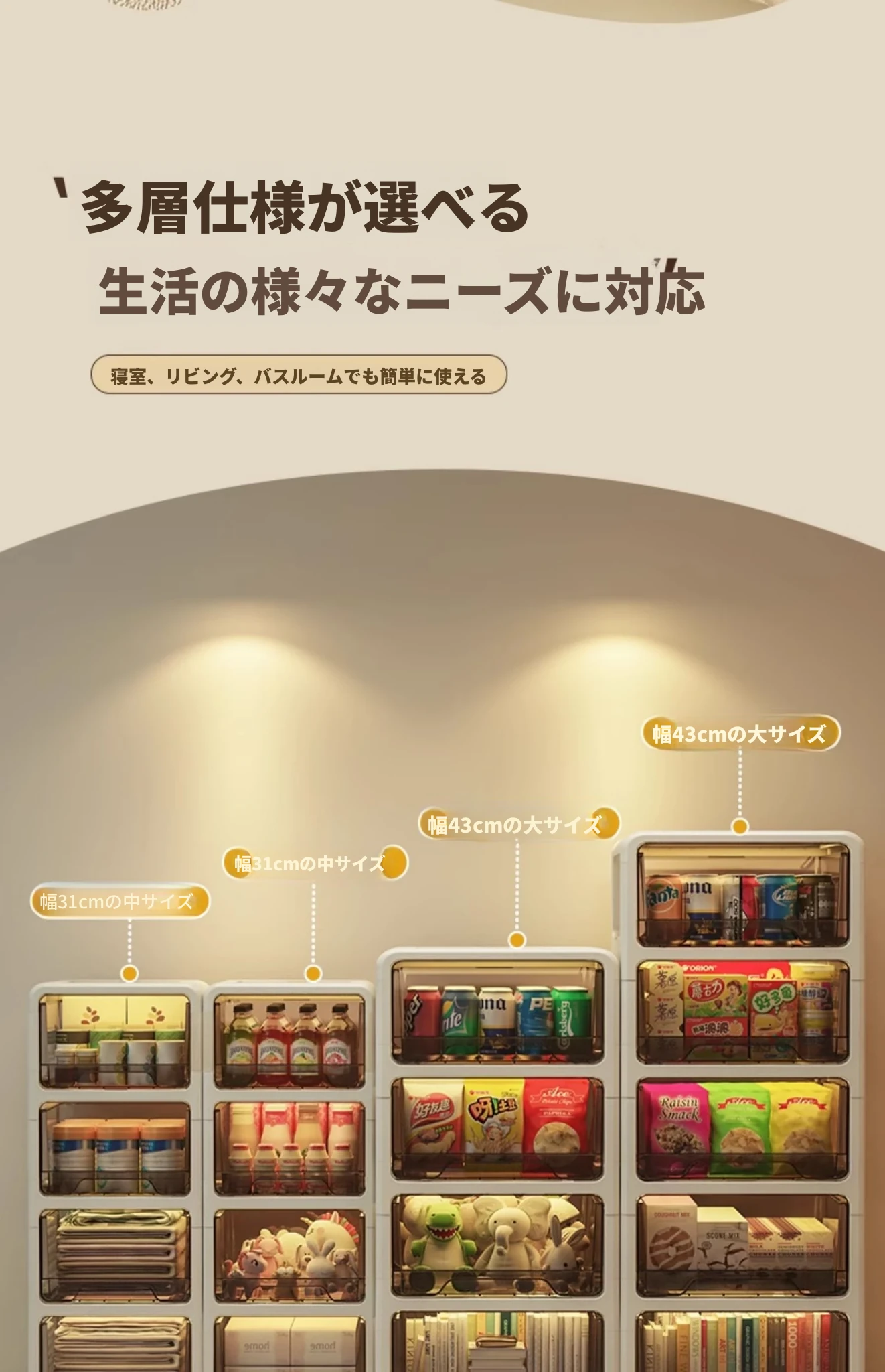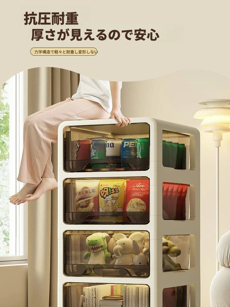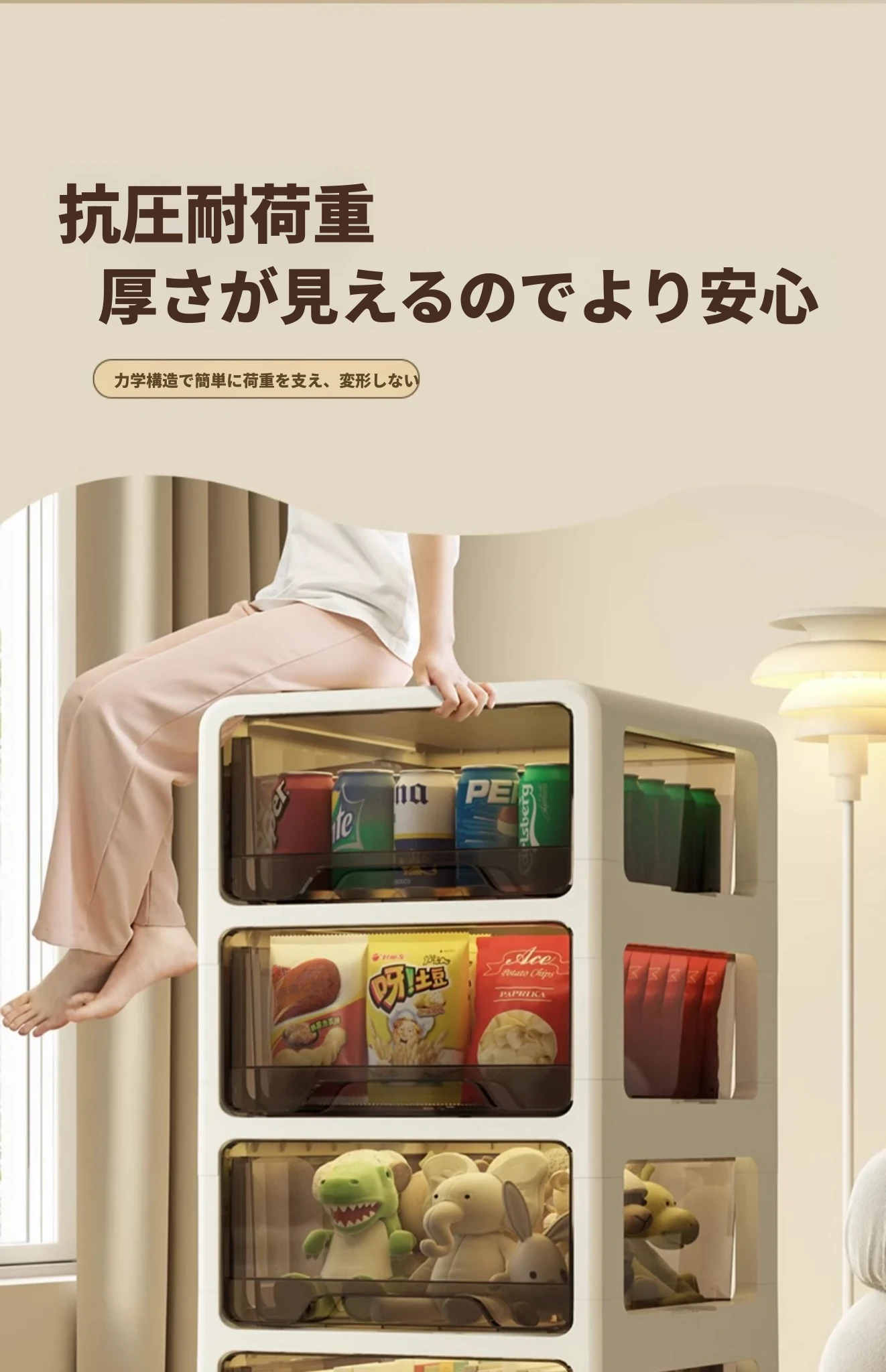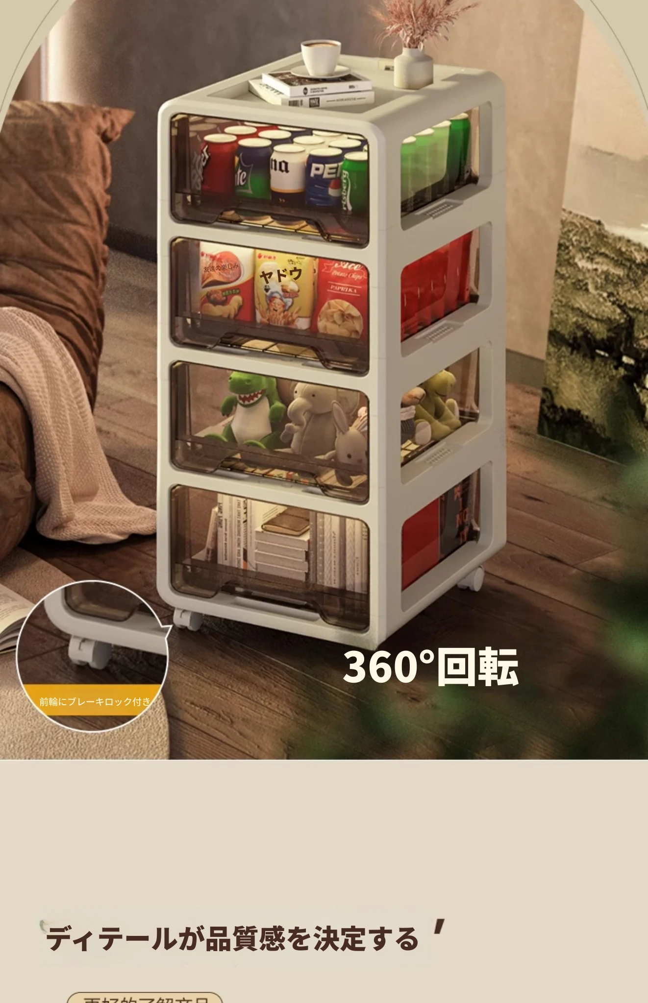 化粧品収納キャビネット - 白 大サイズ - 四層【360°万向きキャスター】