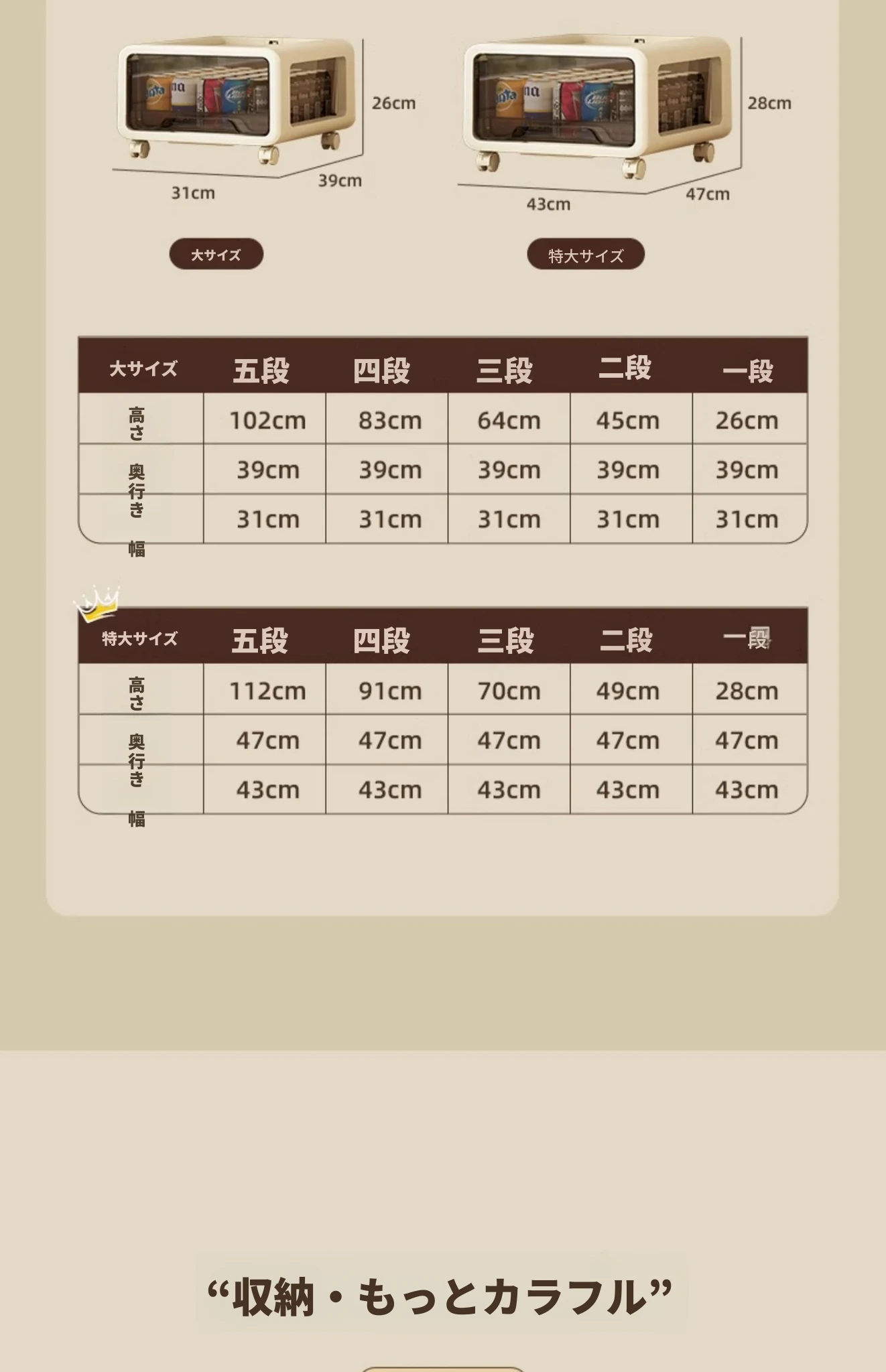 化粧品収納キャビネット - 茶色 大サイズ - 四層【360°万向きキャスター】