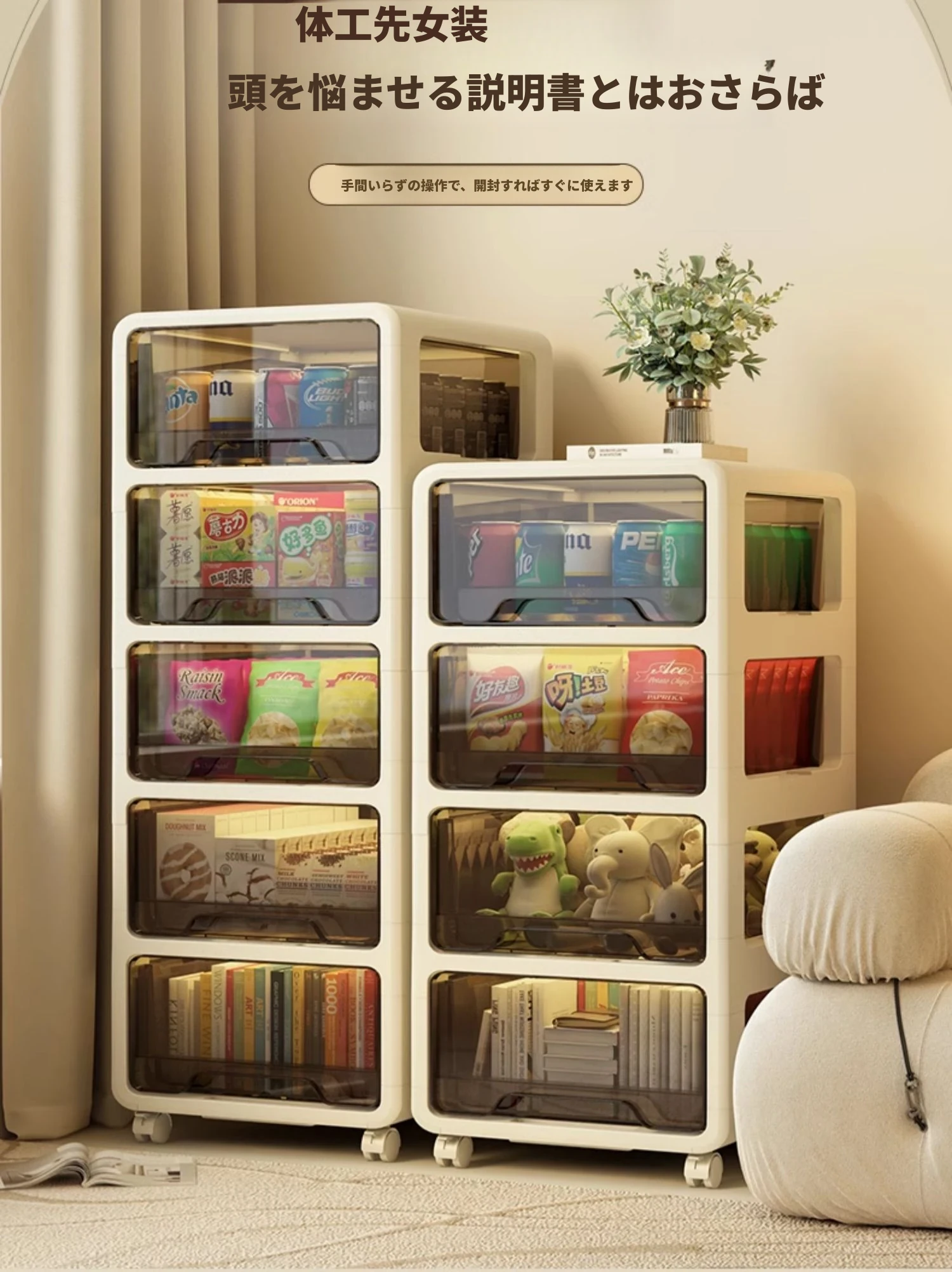 化粧品収納キャビネット - 白 大サイズ - 五層【360°万向きキャスター】